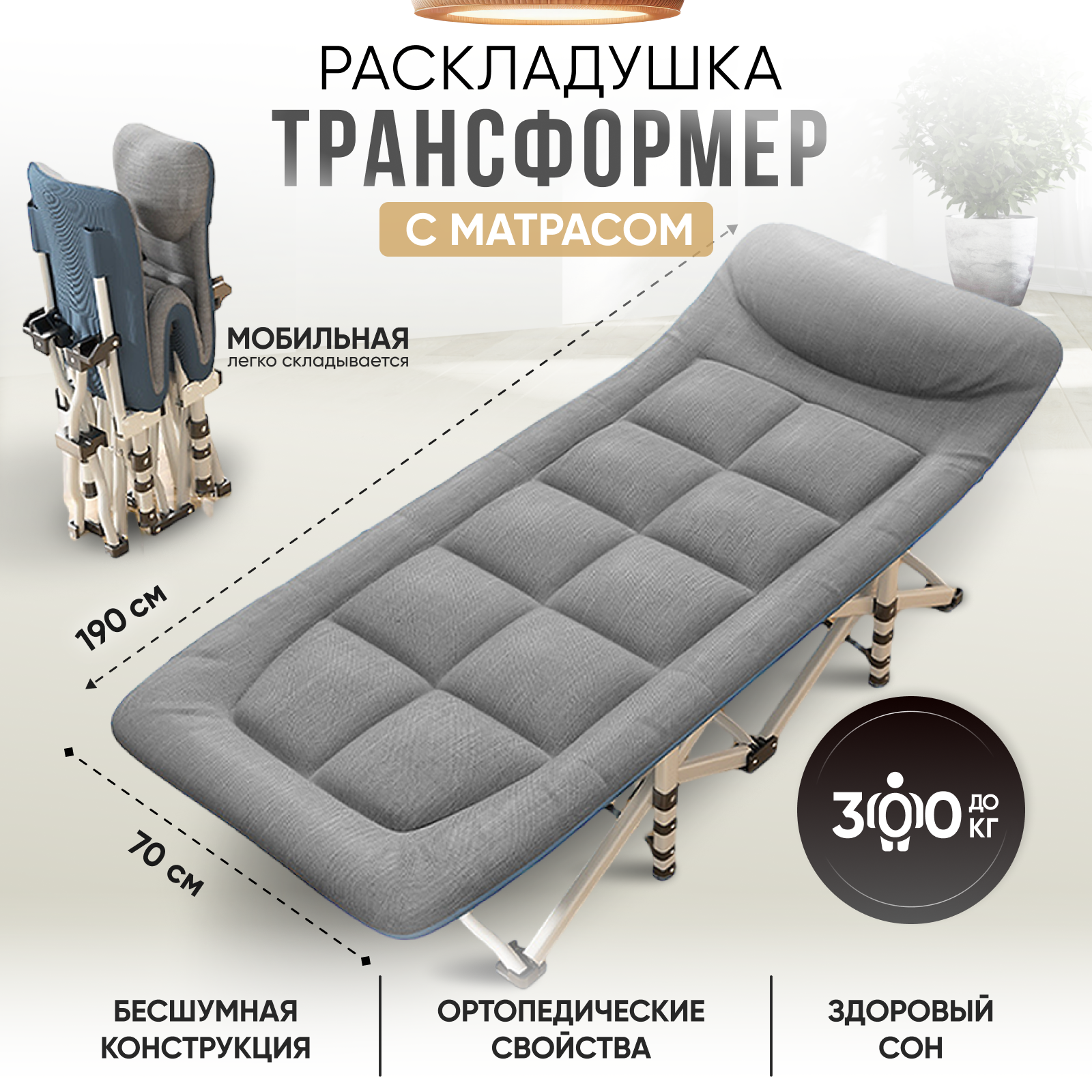 Мобильная раскладушка трансформер с матрасом, 70х190 см. интересное: