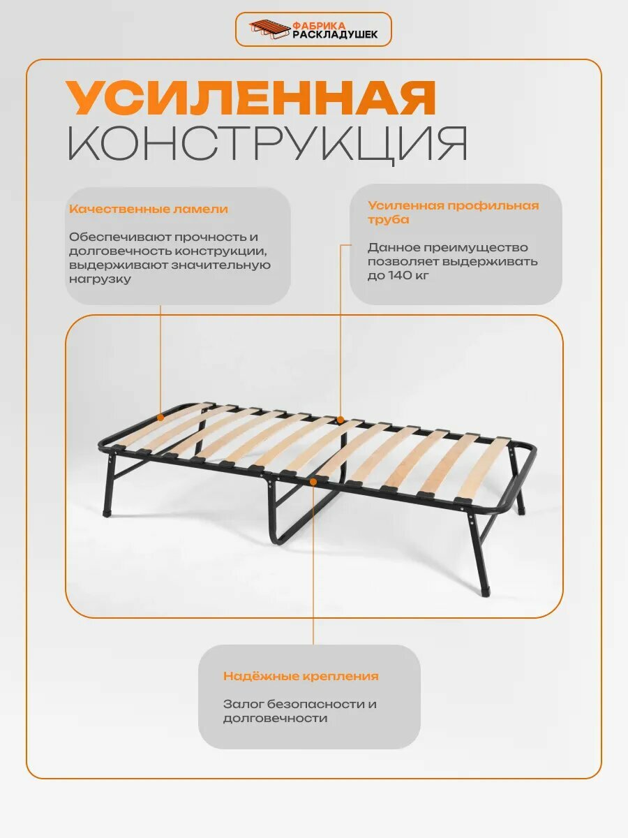 Раскладушка Фабрика-Раскладушек "ЛибраПро70", 190x70x39 см, стальная рама, черный интересное: