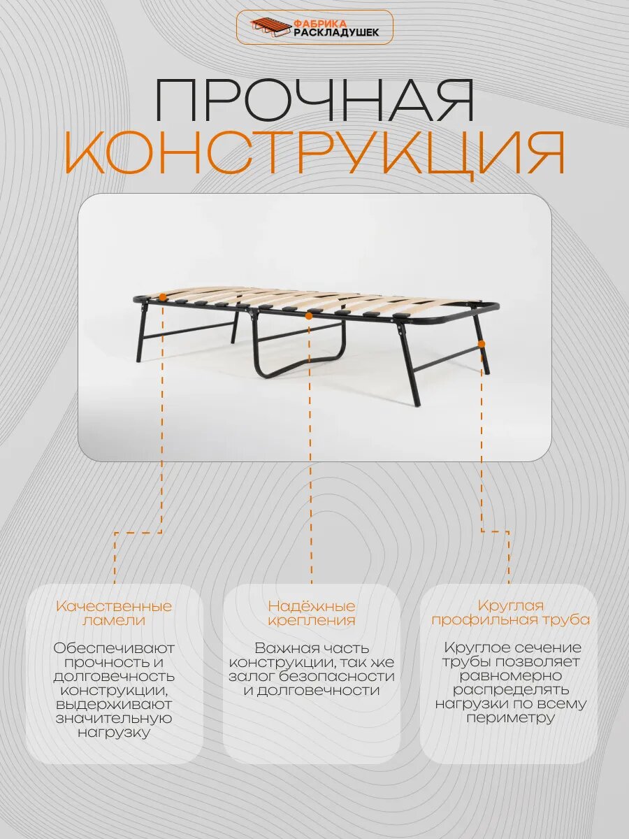 Раскладушка "Либра", с матрасом, черный матовый каркас, 190x70x39 см интересное: