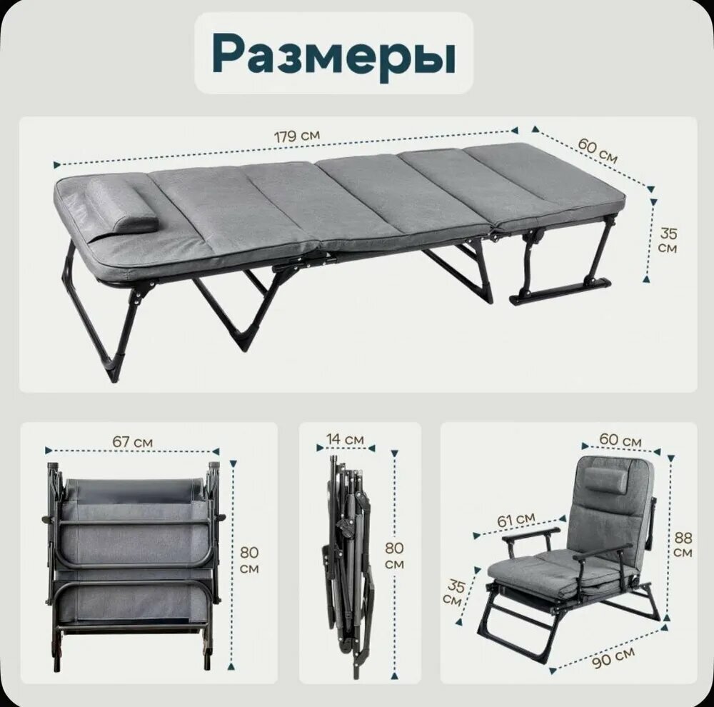 Кресло-кровать, складное, 65 см х 185 см, перламутровое, серое, до 150 кг интересное: