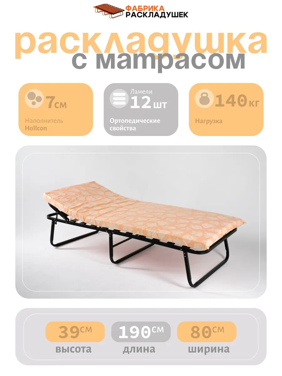 Раскладушка Фабрика-Раскладушек "Гера+80", сталь, максимальная нагрузка 140кг интересное: