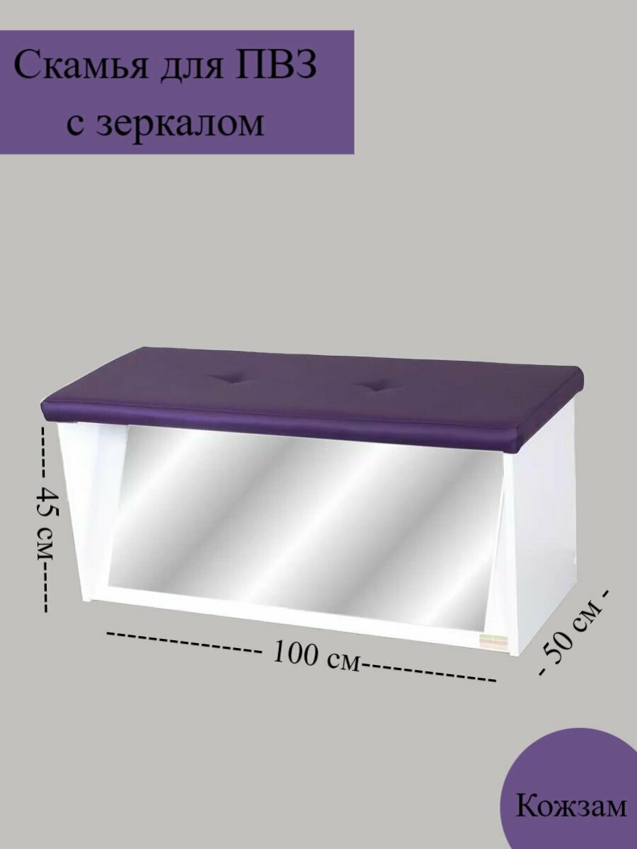 Двойная примерочная с зеркалами, ресепшн, стол выдачи, 2 скамьи для примерки обуви, шторы, пуфики для ПВЗ
