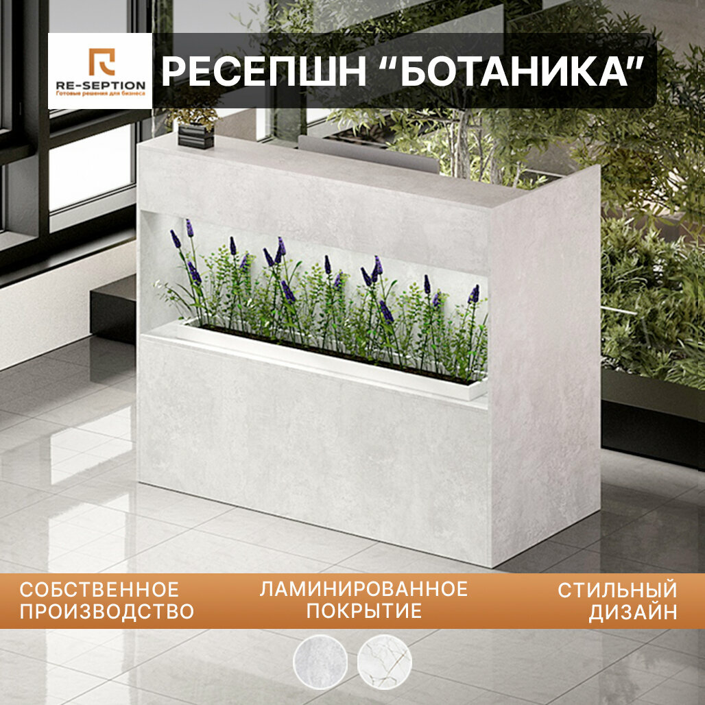 Купить Стойка Мини Ресепшн Ботаника / Цемент Светлый, 800х1050х550, С Подсветкой_bb