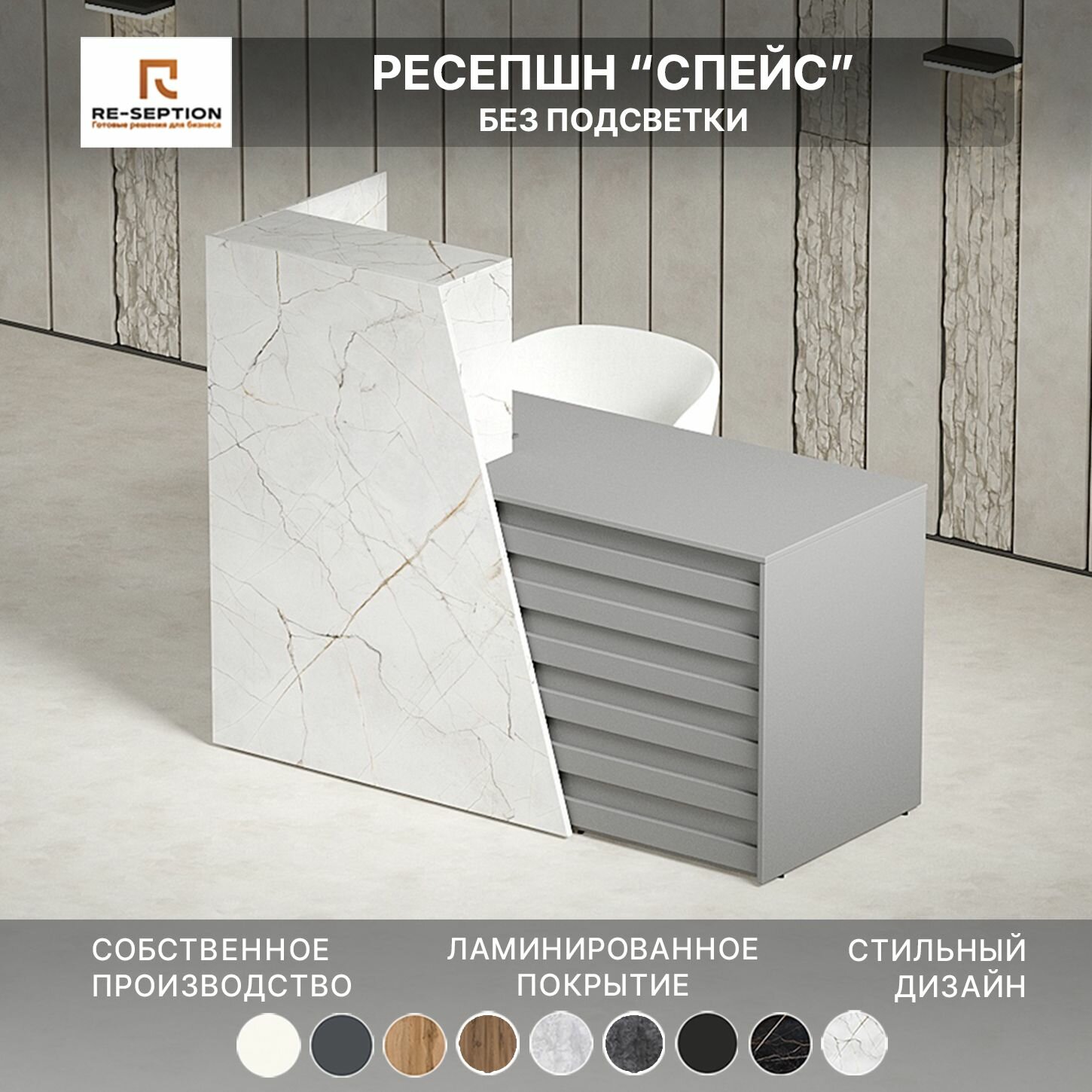 Стойка ресепшн Спейс, Оникс / Серый Шифер, 1200х1200х600, Без подсветки интересное:
