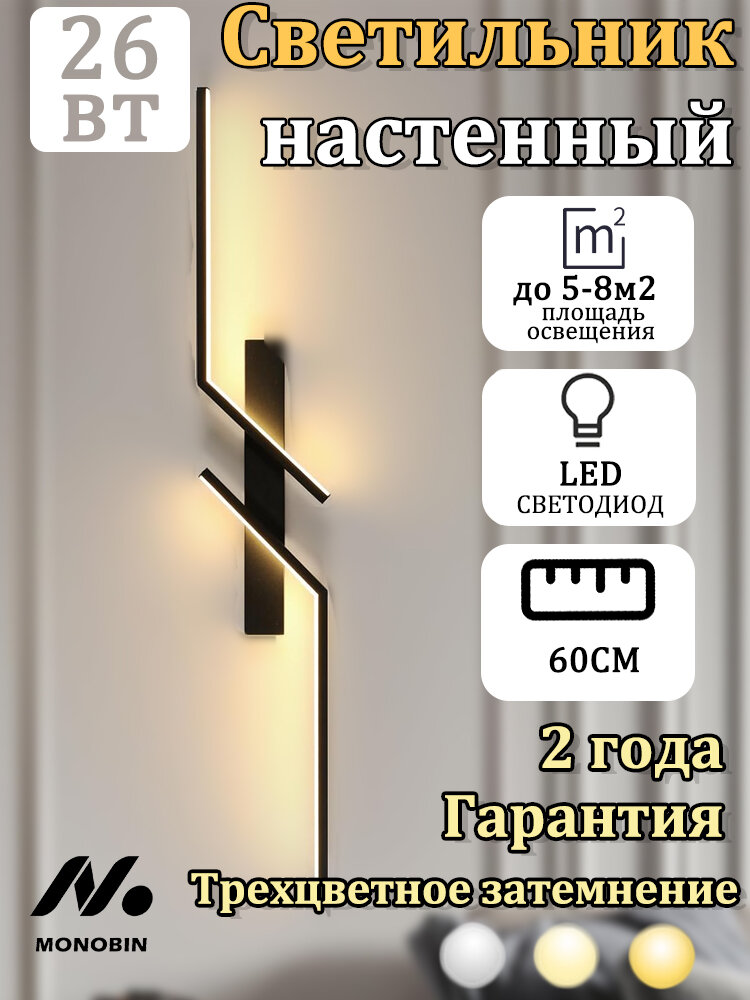 MONOBIN Светильник настенный бра ночник светодиодный, 26вт, 60cm интересное: