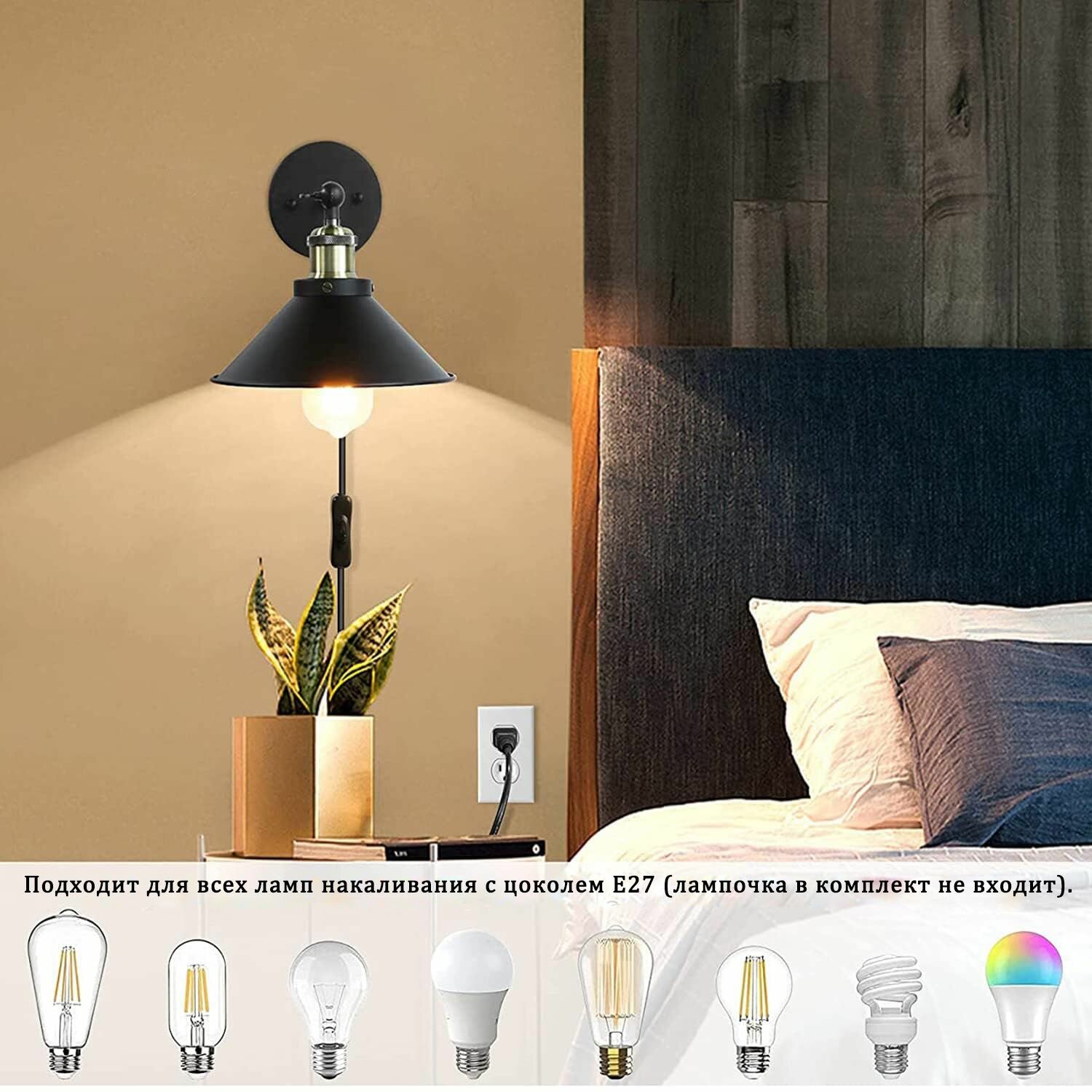 MONOBIN Бра настенный, Настенный светильник лофт для спальни и гостиной , E27 интересное: