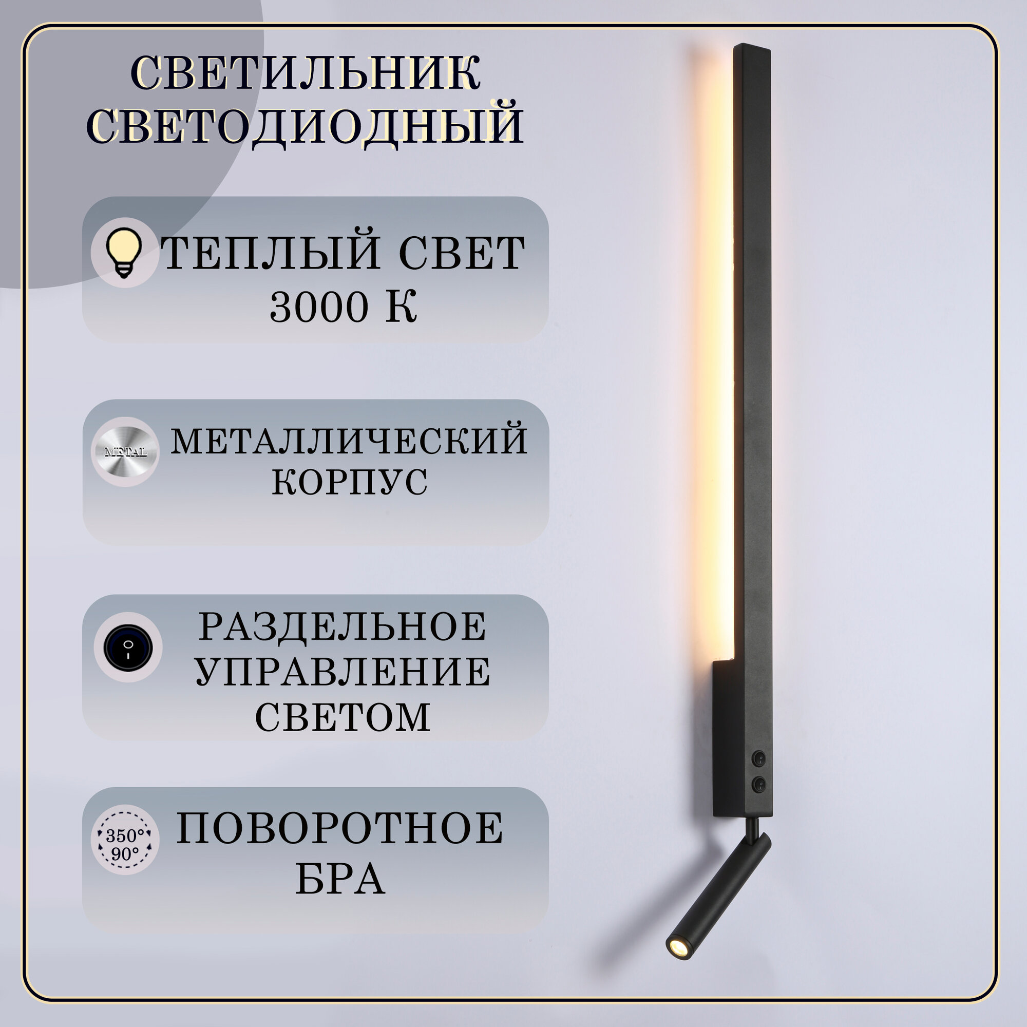 Светильник настенный светодиодный с дополнительным поворотным бра направленного света, прямой, комплект 2 шт интересное: