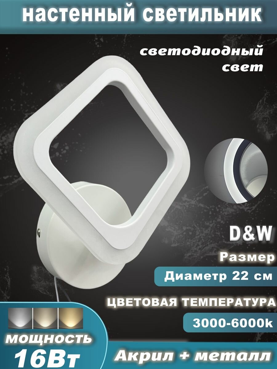 Настенный светильник светодиодный/39205/белый Бра /16Вт/3000-6500K/1280Лм/Для спальни/столовой/гостиной/прихожей/веранды интересное: