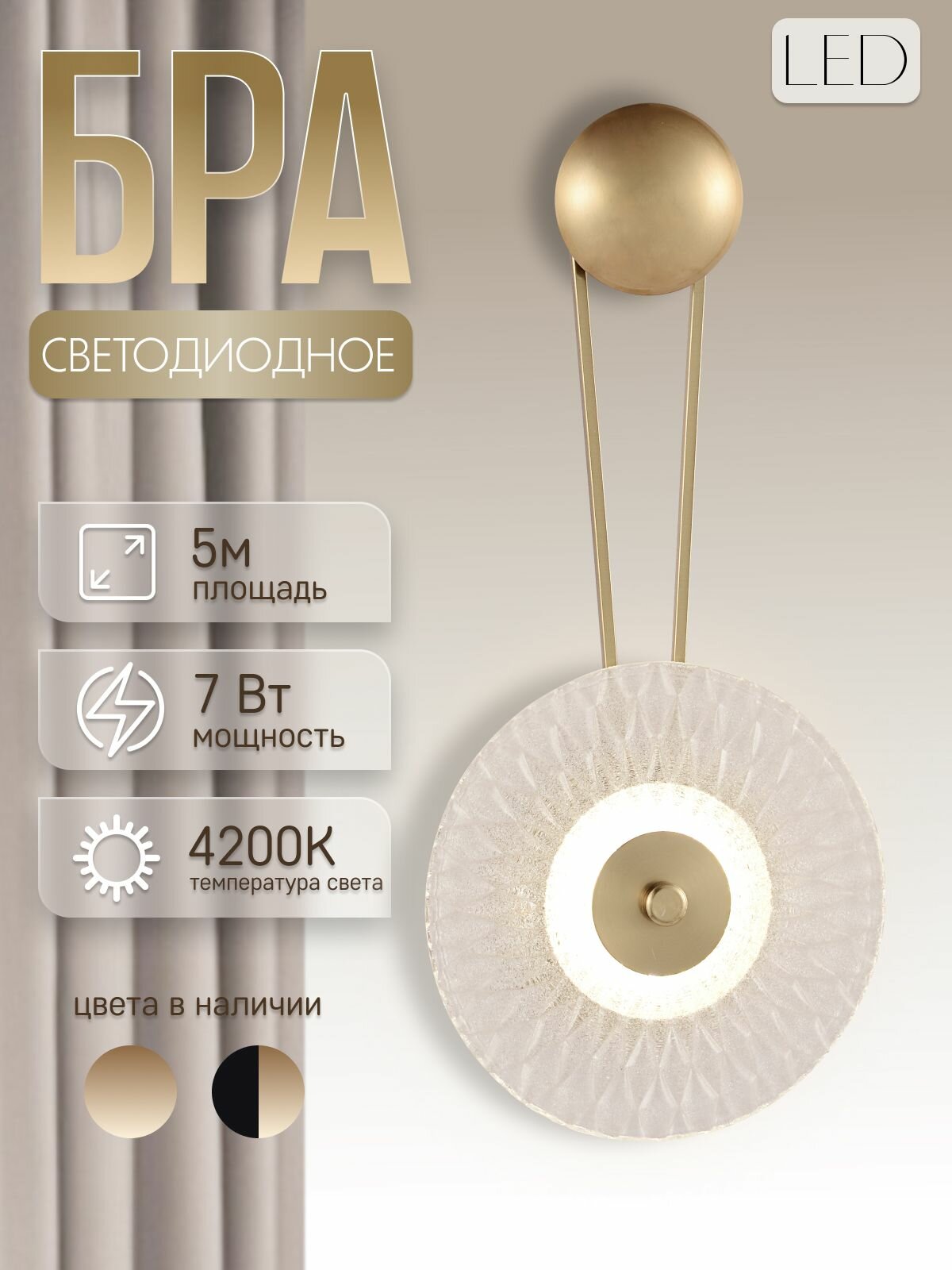 Бра настенные, светильник настенный , Бра светодиодные ЭлисСвет 20149/1W GD