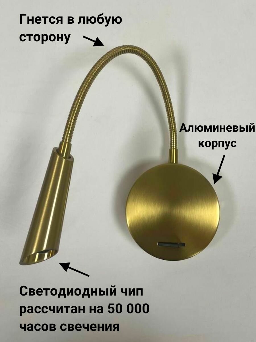 Современная светодиодная гибкая настенная лампа с выключателем, Бра Прямоугольник для спальни, гостиной, кухни Wogow Золото