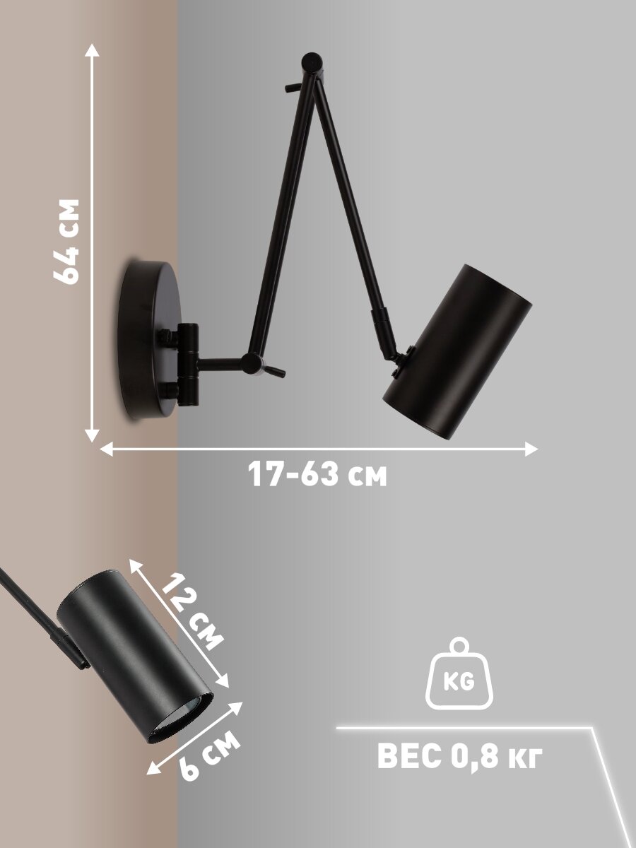Бра поворотный Lamplandia L1744 CODO TOP BLACK, GU10*1 макс 50Вт интересное: