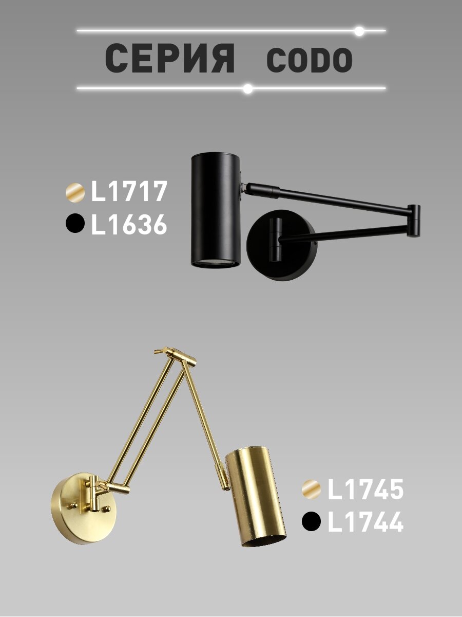 Бра поворотный Lamplandia L1745 CODO TOP BRASS, GU10*1 макс 50Вт интересное: