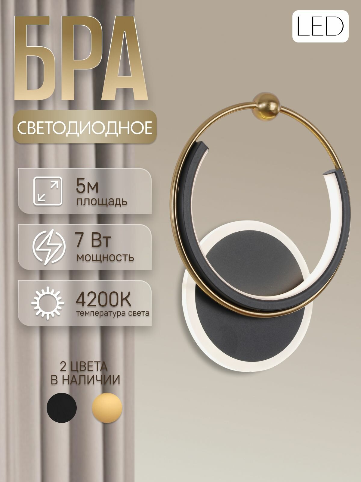 Бра настенные, светильник настенный , Бра светодиодные ЭлисСвет 20156 /1W BK+AB интересное: