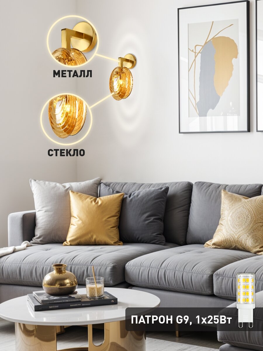 Бра Lamplandia L1773 SHELL GOLD AMBER, G9*1 макс 25Вт интересное: