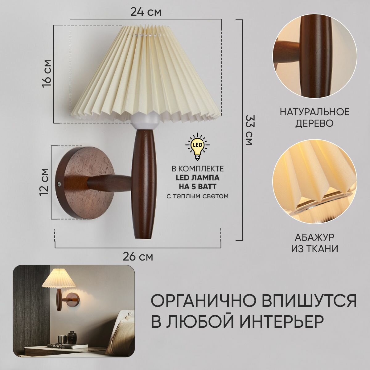 Светильник настенный бра светодиодный в спальню, гостиную, коридор, кухню / 10Вт, дерево, Е27