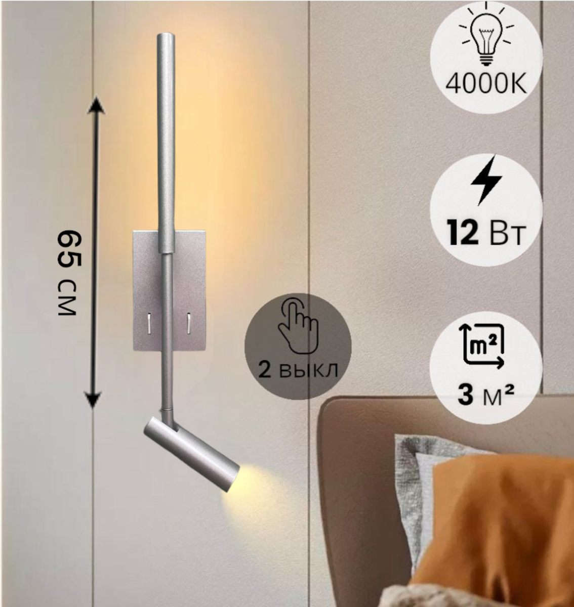 Светильник WOGOW, настенный, поворотный, 12Вт, IP21, современный, серебристый интересное:
