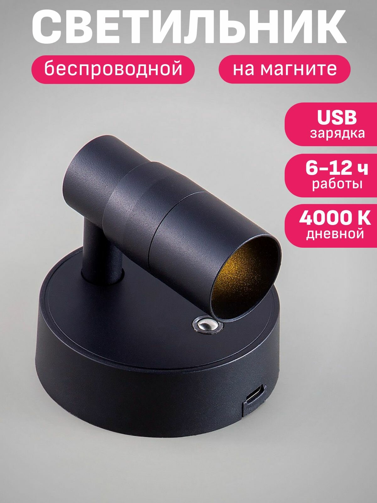 Купить Светильник настенный беспроводной светодиодный с регулировкой фокуса Maple Lamp LIGHT RAY WL-36-4000K-BLACK, черный