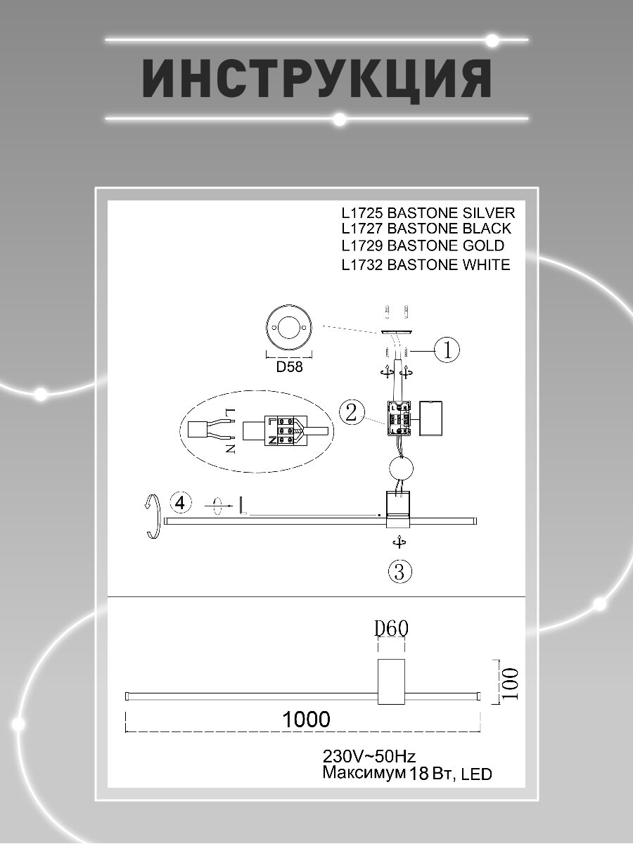 Бра светодиодный Lamplandia L1725 BASTONE SILVER 100, SMD LED 18W интересное: