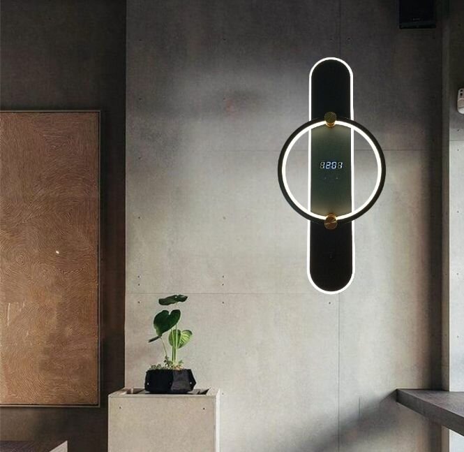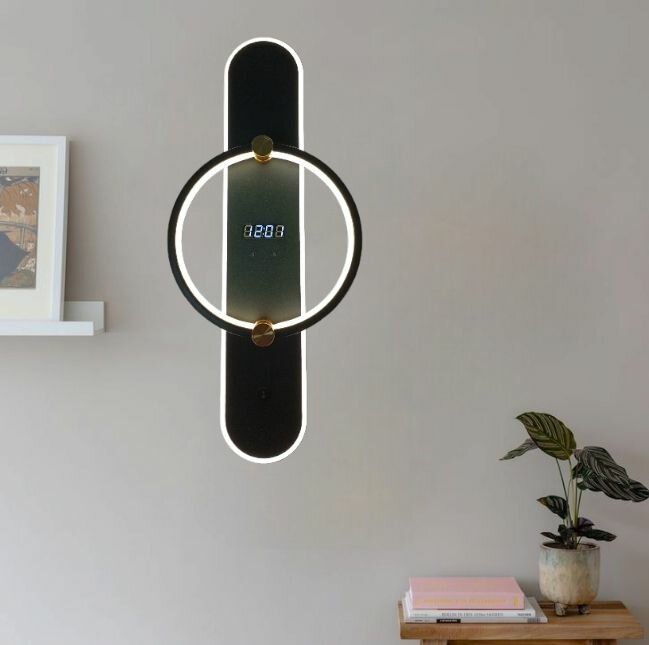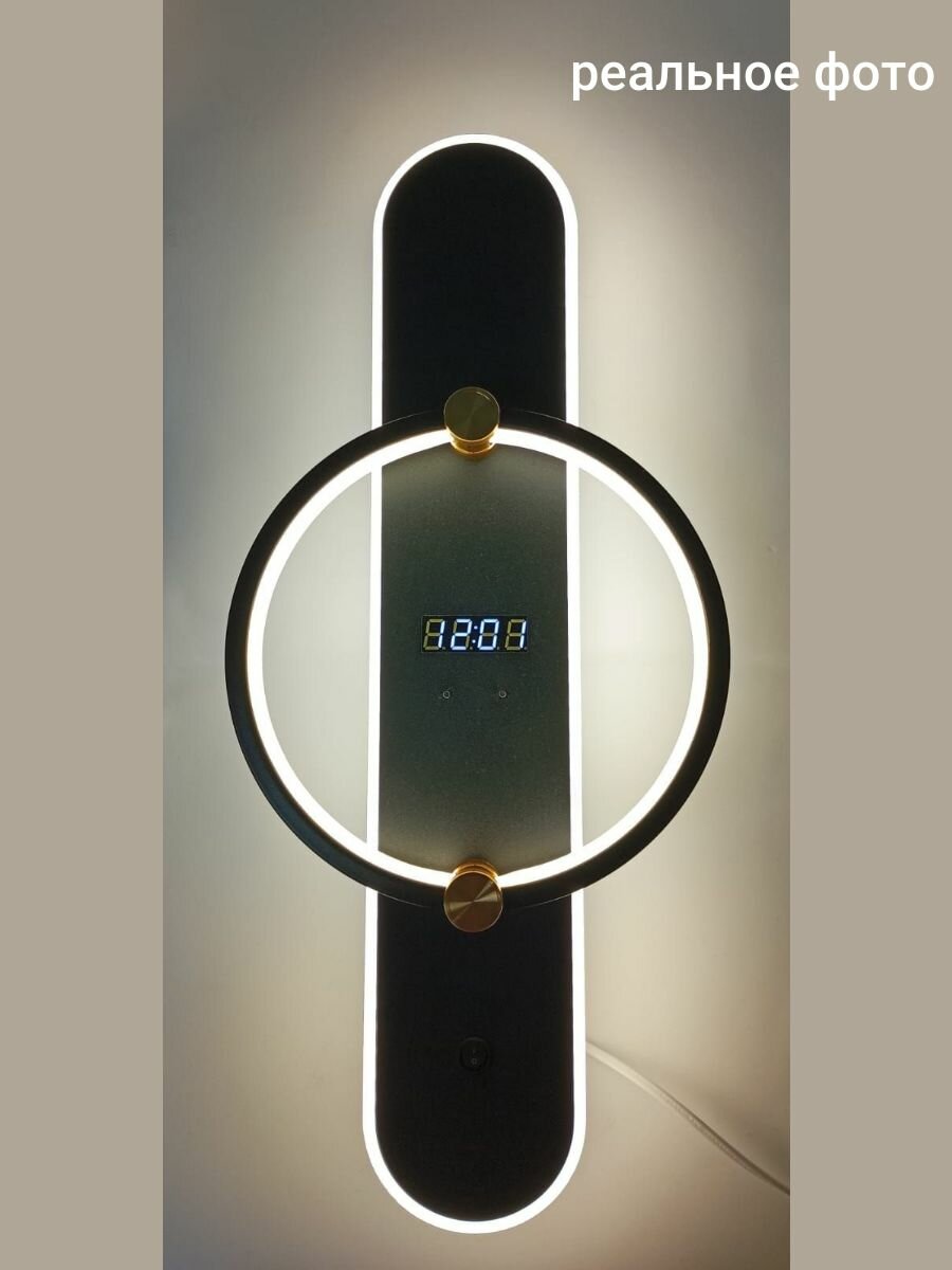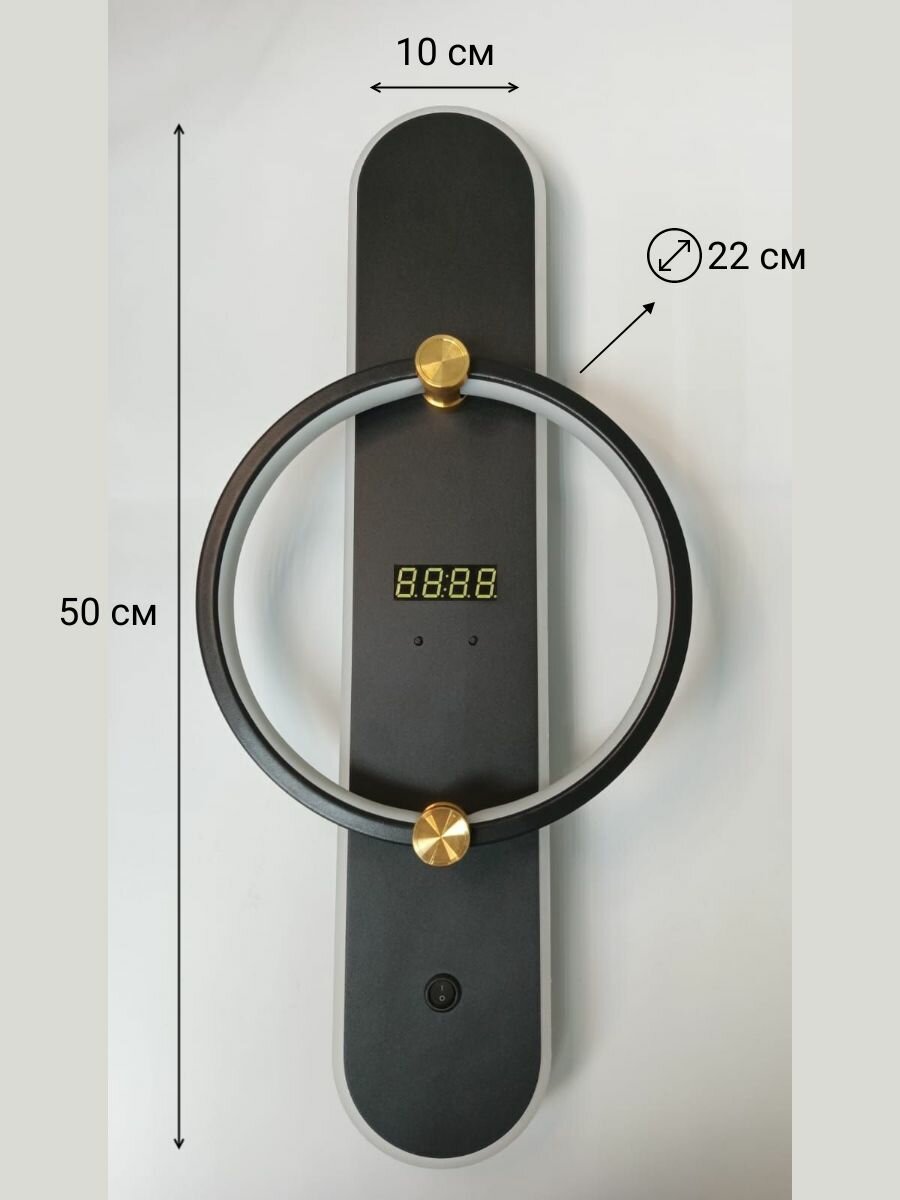 Бра настенный светодиодный с часами и выключателем Светильник кольцо на планке из алюминия 50 см Черный Нейтральный интересное: