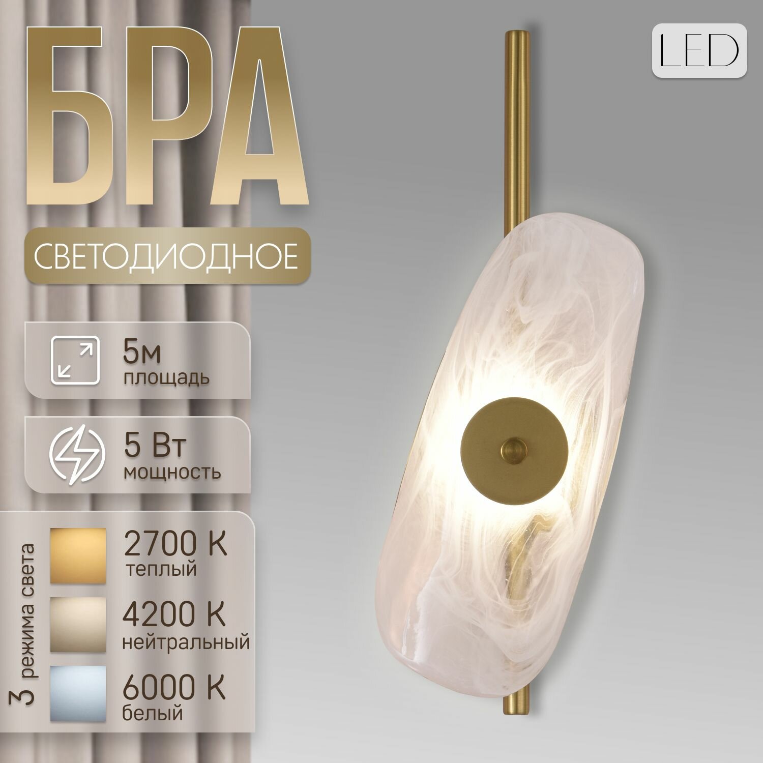 Бра настенные, светильник настенный , Бра светодиодные ЭлисСвет 20148-1W АВ интересное: