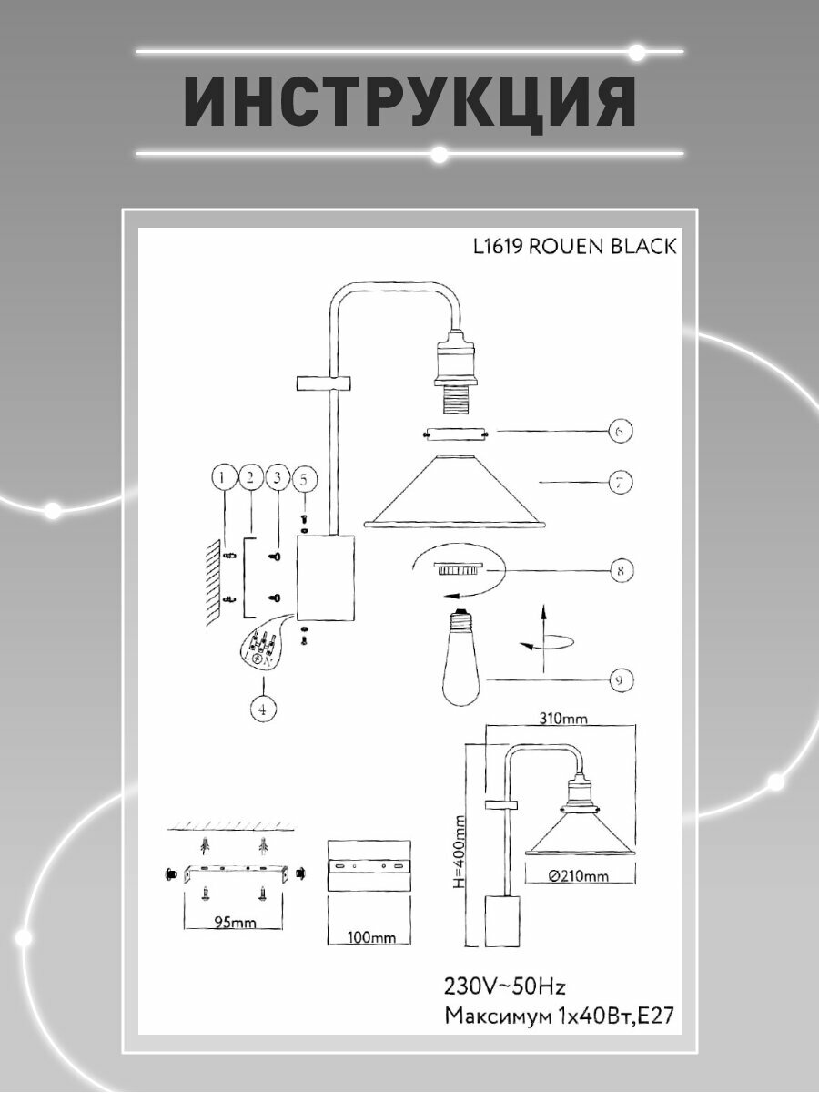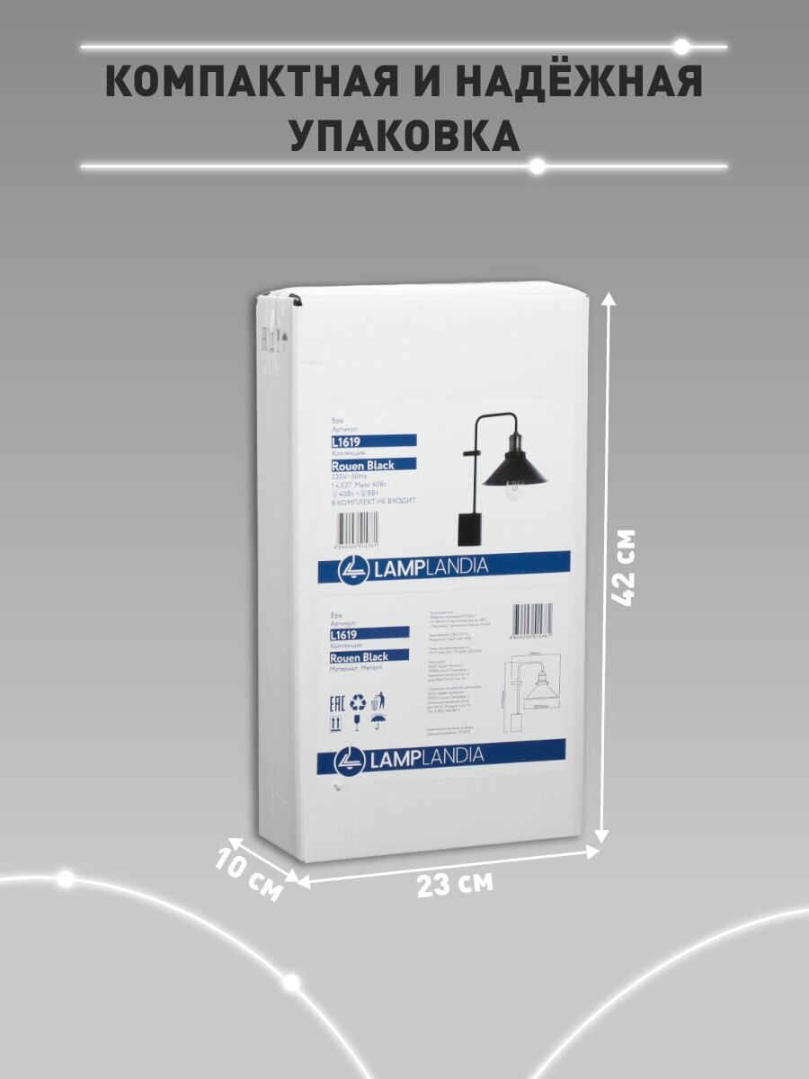 Бра Lamplandia L1619 ROUEN BLACK, Е27*1 макс 40Вт интересное: