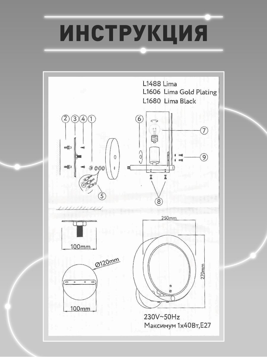 Бра Lamplandia L1680 LIMA BLACK, E27*1 макс 40Вт интересное: