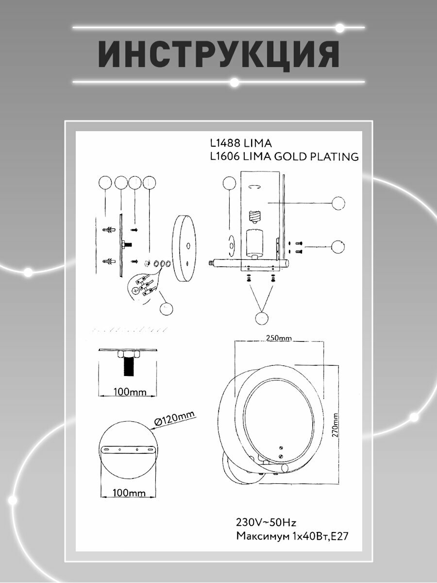 Бра Lamplandia L1606 LIMA GOLD PLATING, Е27*1 макс 40Вт интересное:
