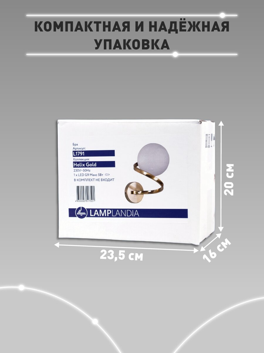 Бра Lamplandia L1791 HELIX GOLD, G9*1 макс 5Вт интересное: