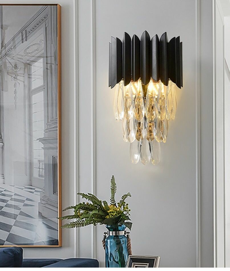 Бра настенные хрустальные, светильник настенный ЭлисСвет 1208BG/2W BK