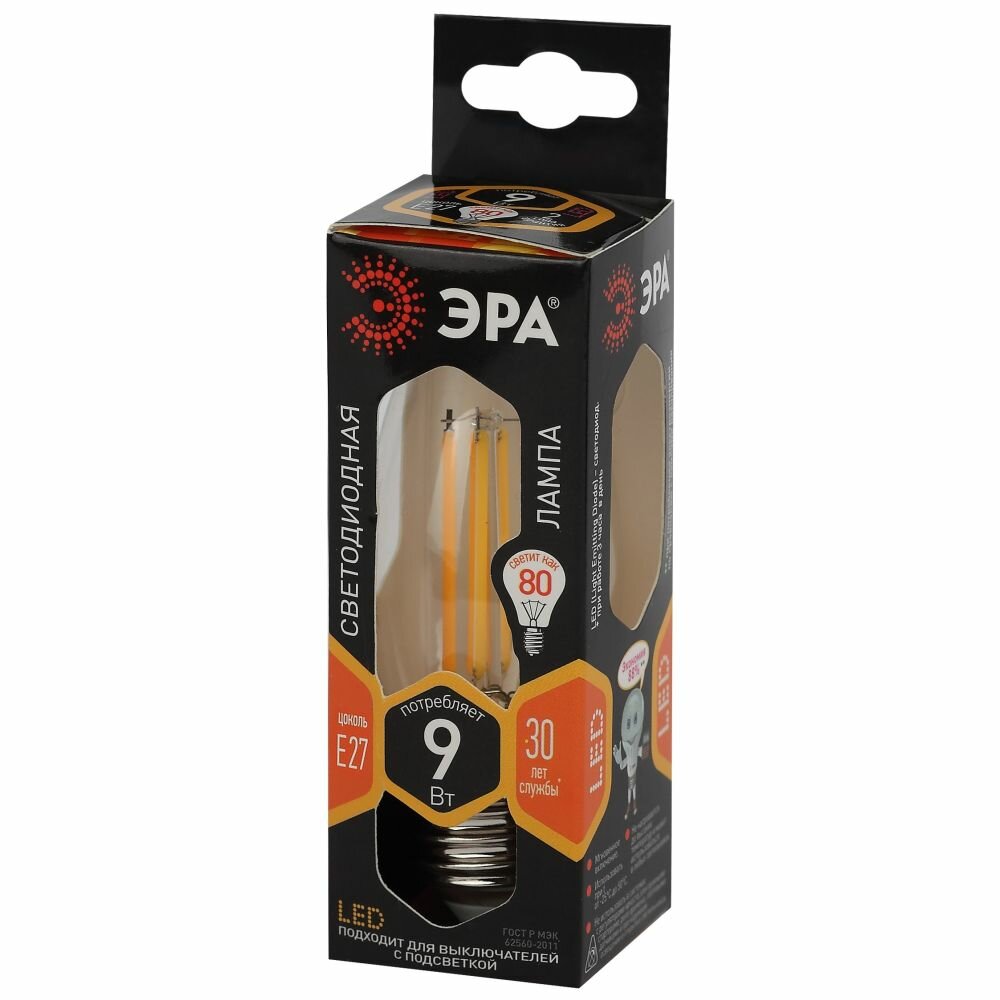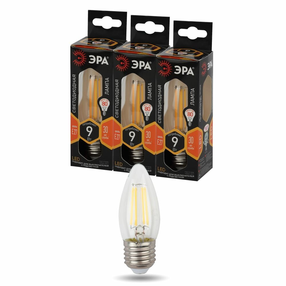 Набор светодиодных лампочек ЭРА F-LED B35-9w-827-E27 2700K свеча 9 Вт 3 штуки интересное: