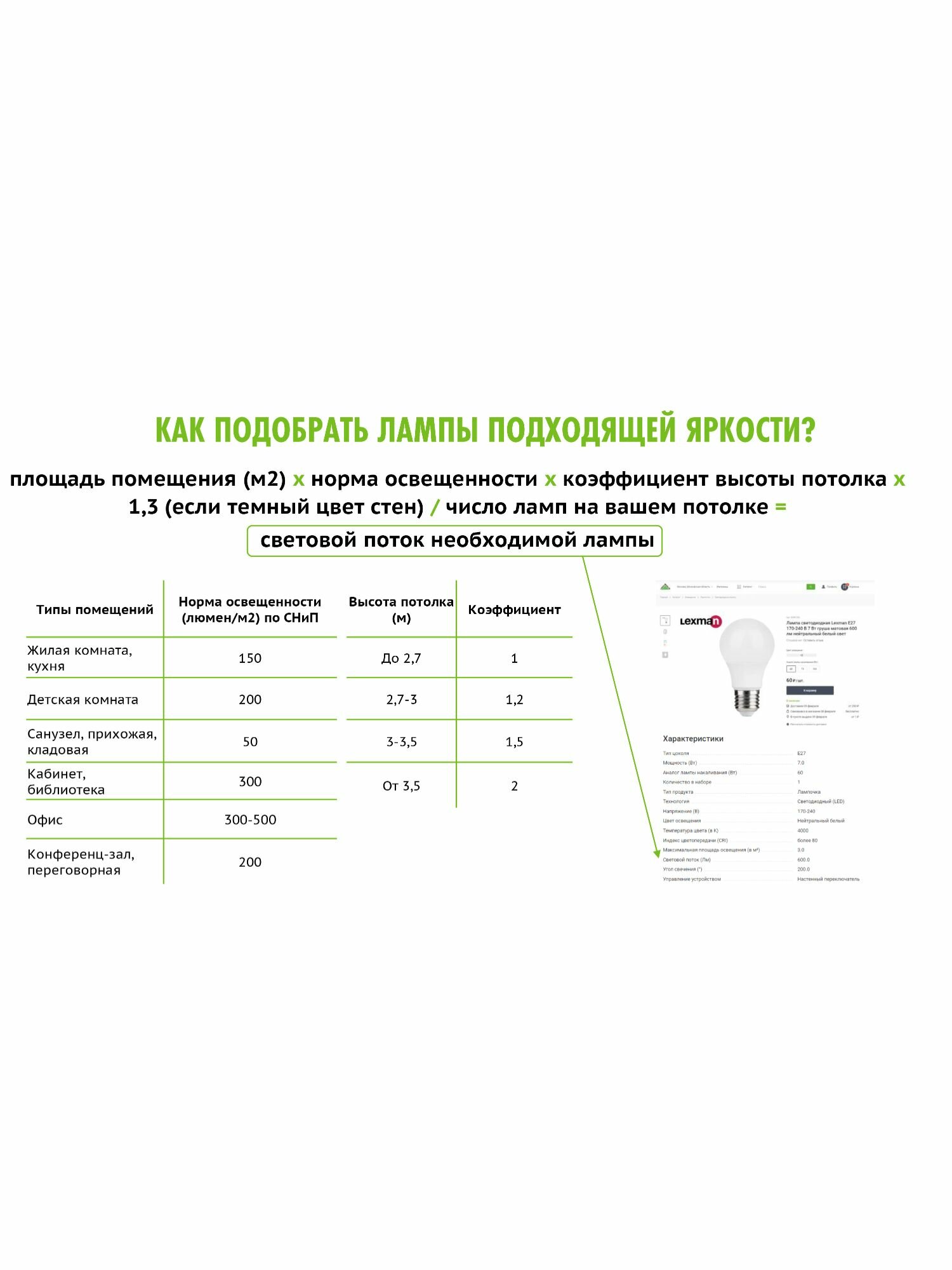 Лампа светодиодная Lexman E27 175-250 В 7.5 Вт груша 750 лм нейтральный белый цвет света
