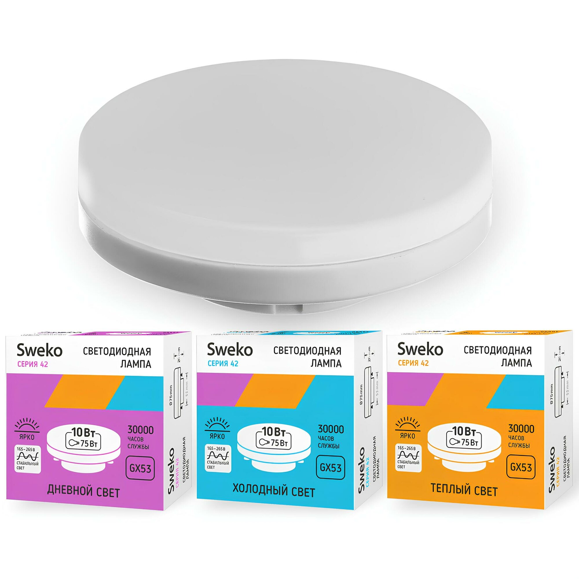 Купить Лампа диодная Sweko 3 штуки холодная GX53 10Вт 4000/930лм 165-265В