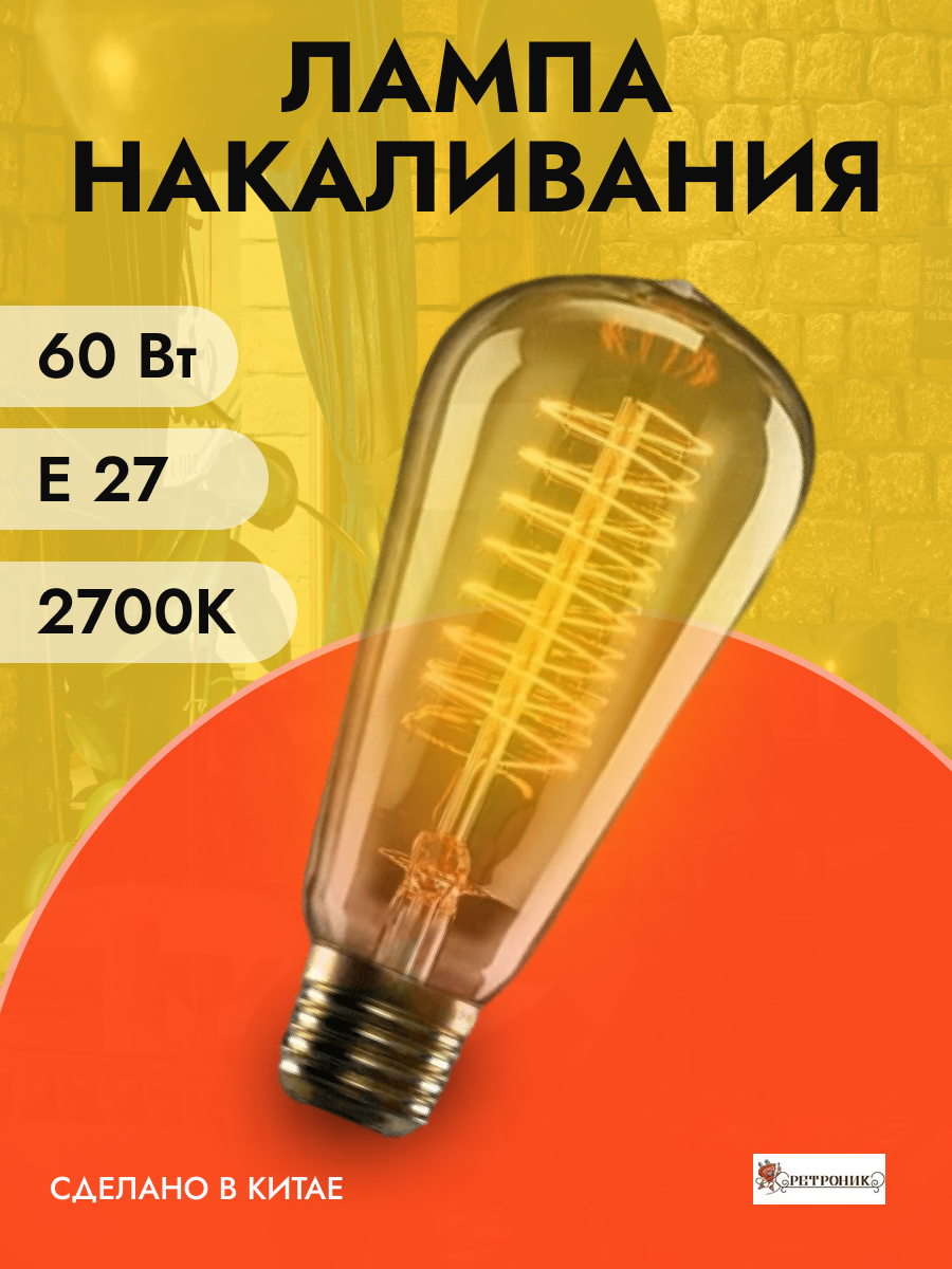 Лампа Эдисона декоративная ST58 лампочка накаливания Е27 60Вт интересное: