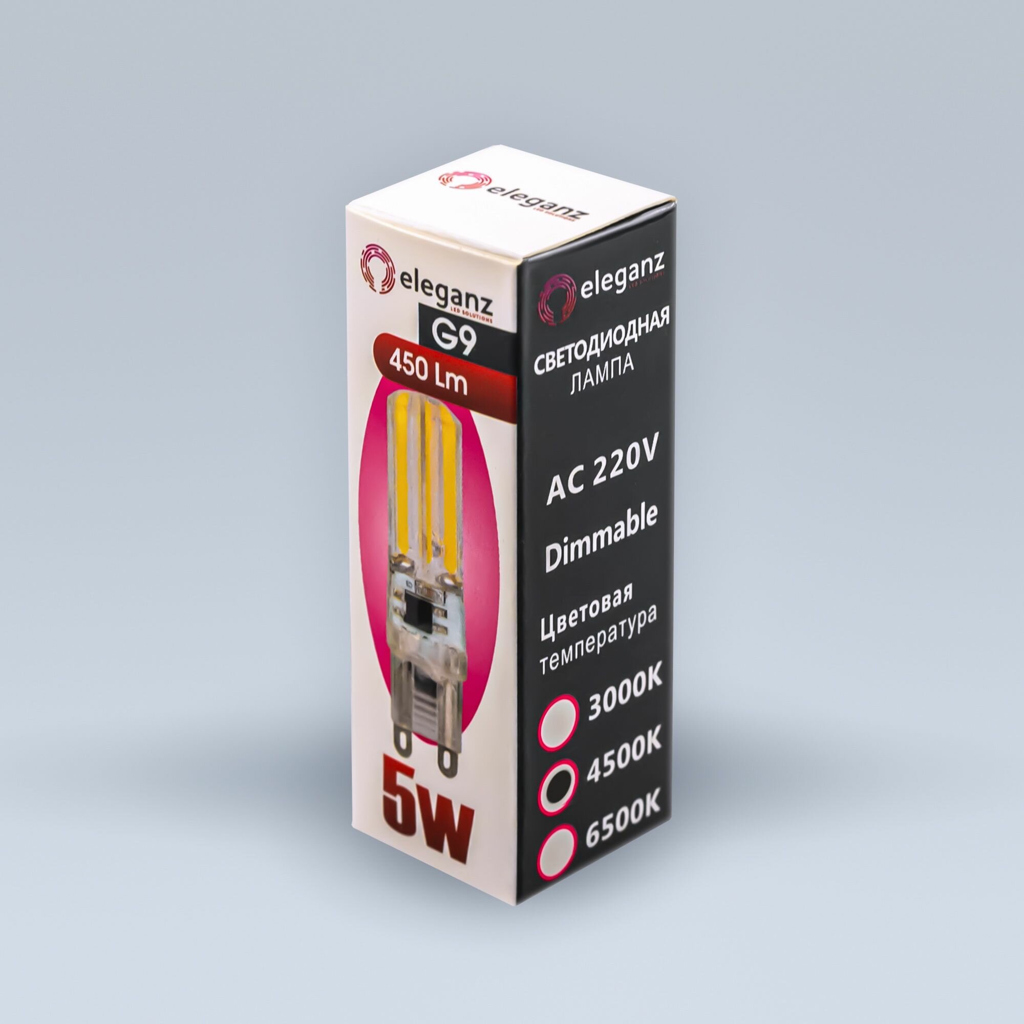Лампочка светодиодная диммируемая "Eleganz" 5вт, 220в, 450Лм, 3000К, лампа g9 (упаковка 5 шт.)