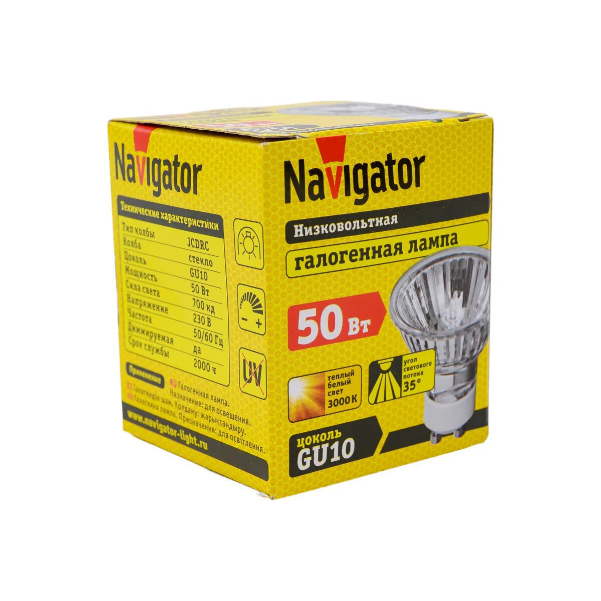 Купить Галогеновая лампа Navigator GU10, мощность 50 W, теплый белый свет