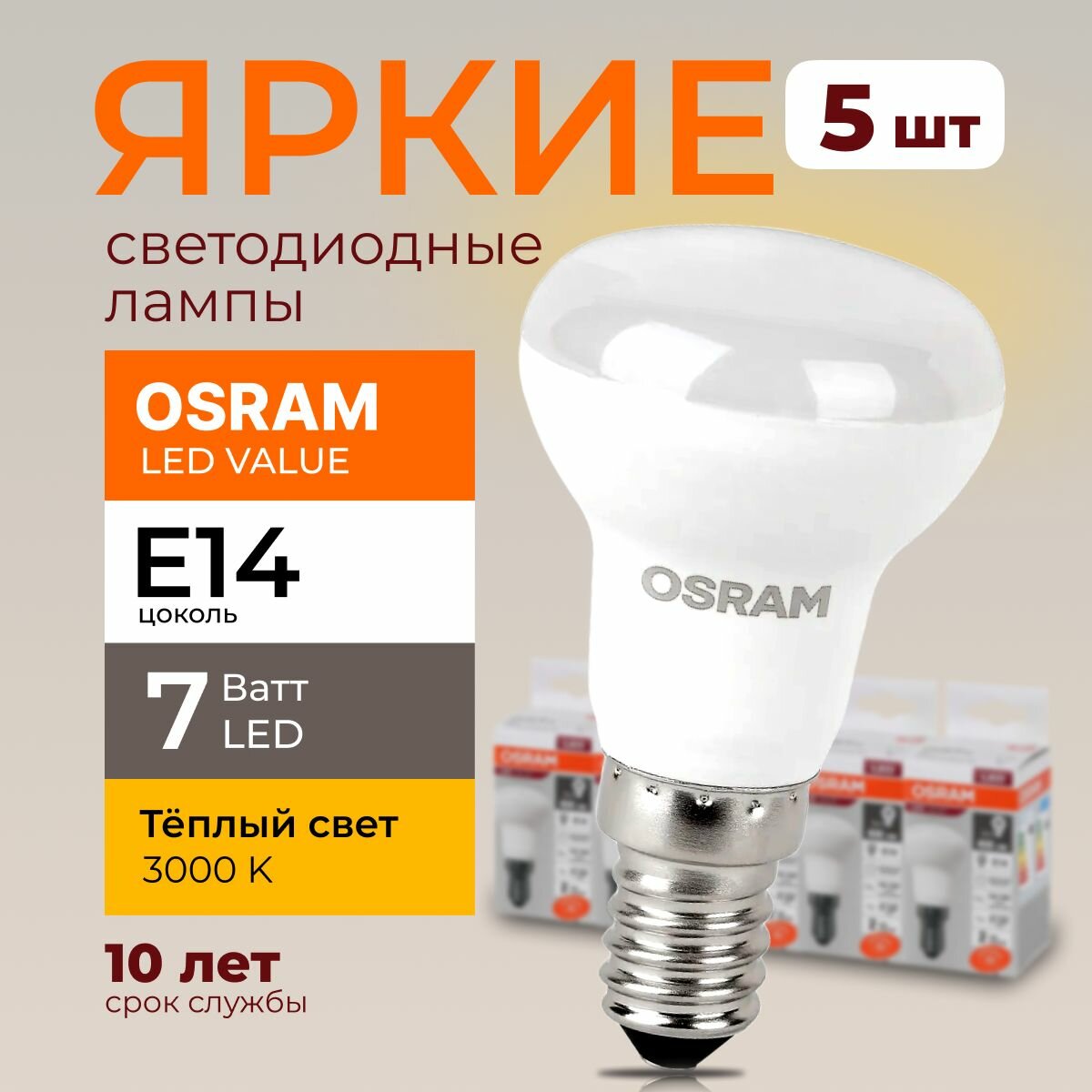 Купить Светодиодная лампочка OSRAM E14 7 Ватт 3000К теплый свет R50 гриб 230V LED 830, 7W, 560lm, набор 5шт