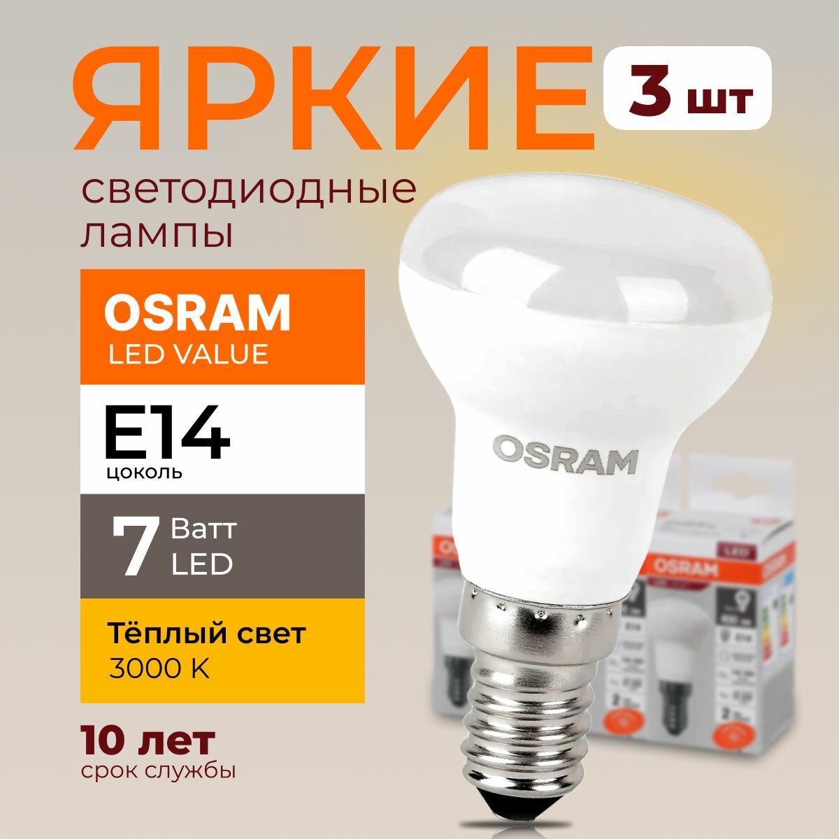 Купить Светодиодная лампочка OSRAM E14 7 Ватт 3000К теплый свет R50 гриб 230V LED 830, 7W, 560lm, набор 3шт