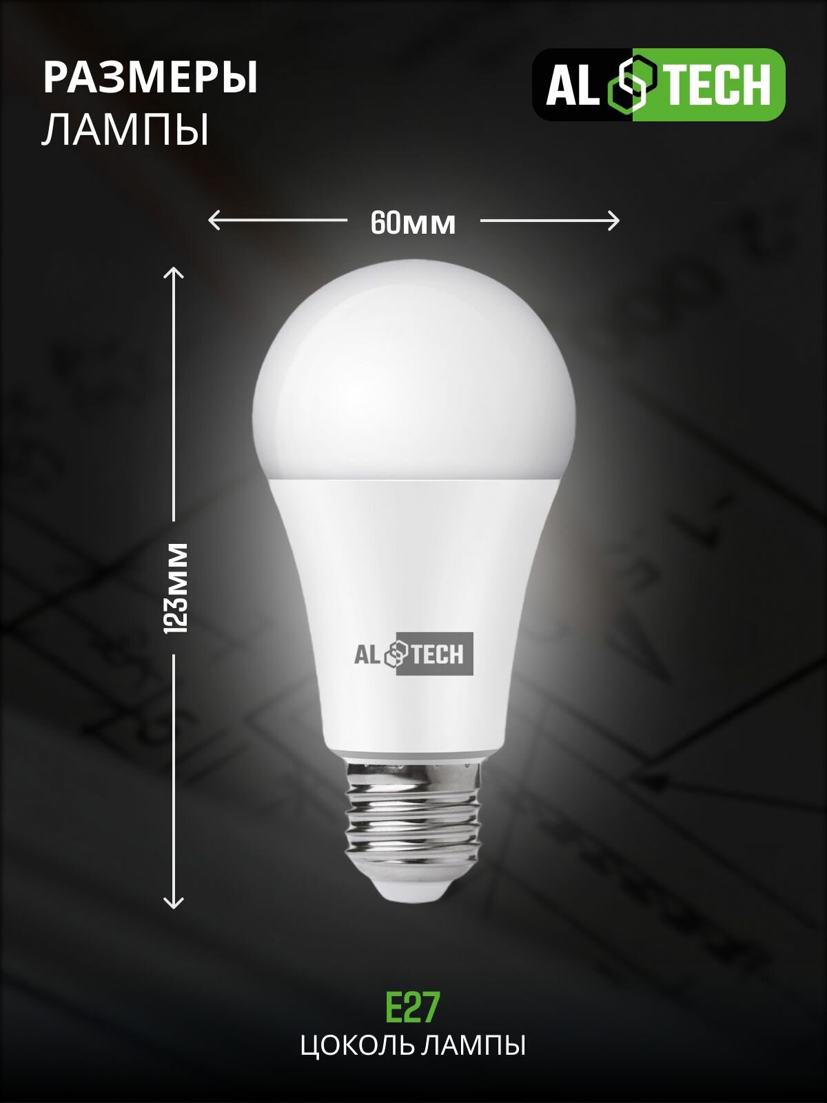 Лампочка светодиодная E27 6500K 15 Вт (аналог 120 Вт) холодный белый свет AL TECH, груша, упаковка 10шт