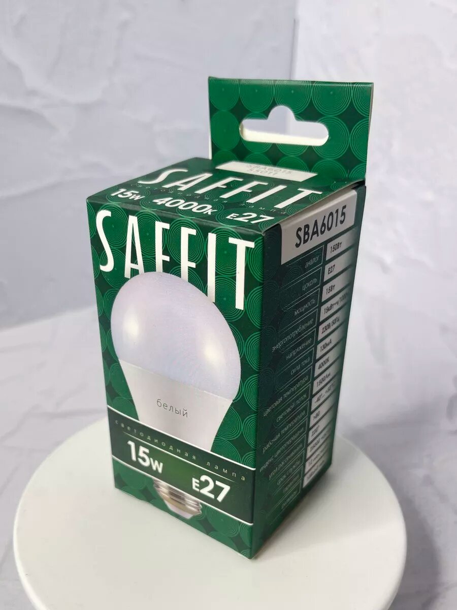 Лампа светодиодная SAFFIT SBA6015, E27, 15W, 4000K, белый свет, 5 шт интересное:
