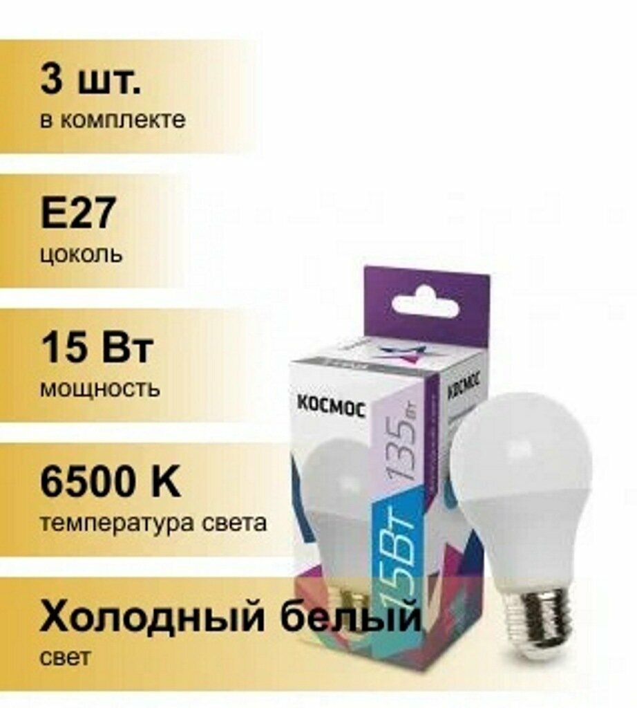 Лампа светодиодная A60 15Вт 3000К E27 220В космос LkecLED15wA60E2730(3 штук.)