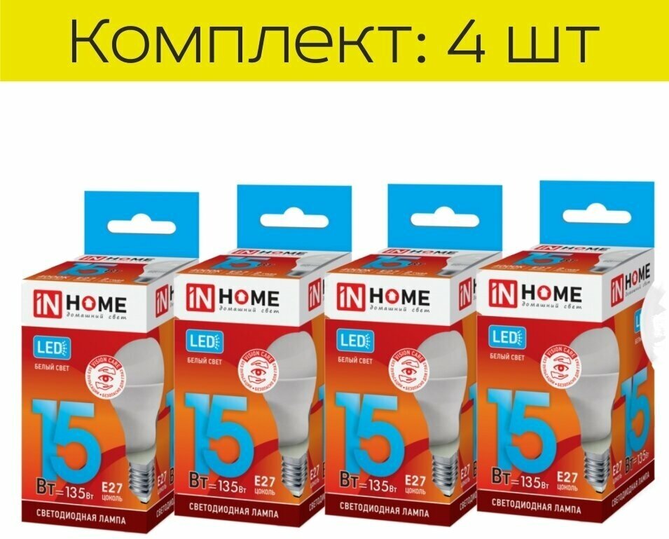 Купить IN HOME Лампа светодиодная LED-A60-VC 4PACK 15Вт 230В Е27 4000К 1430Лм (4шт./1упак.) (арт. 4690612047683)