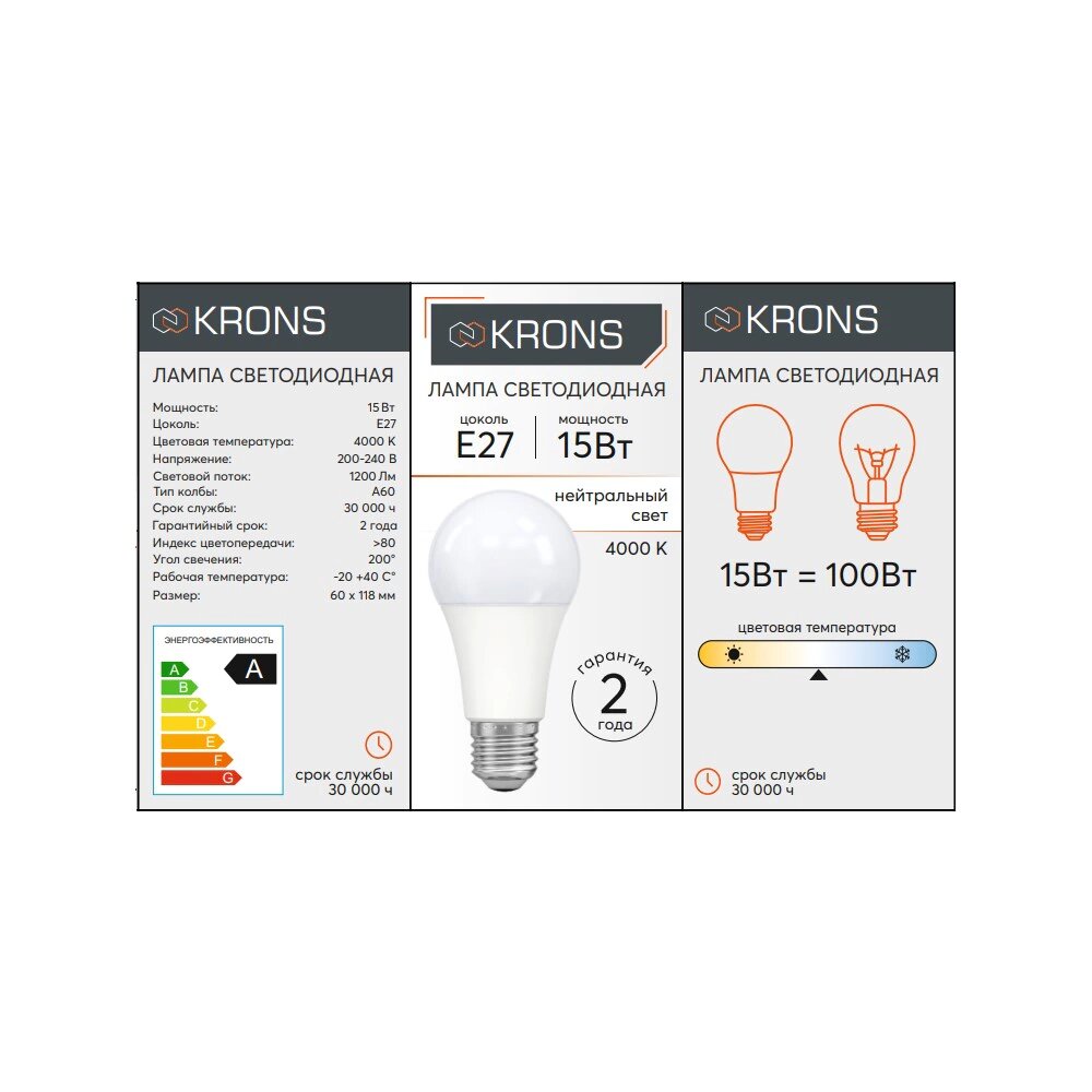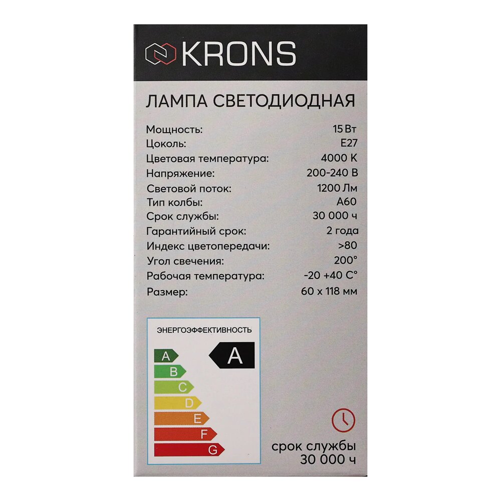 Светодиодная лампа KRONS 15 Вт Е27/А дневной свет интересное: