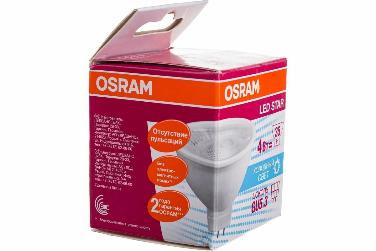 Купить 5шт/уп. Лампа LED Софит 4Вт 220-240В GU5.3 MR16 300Лм 5000К Угол 110 град. d 50mm h 50mm Свет Холодный белый Osram, уп. 5шт