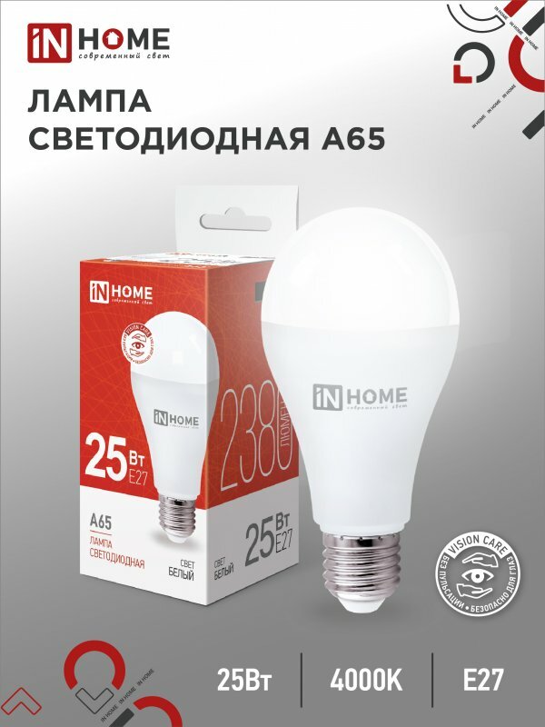 Ниже Вы можете прочитать отзывы на Лампочка In Home LED-A65-VC Е27 25W 230V 4000К 2380Lm (6шт), ознакомится с подробными характеристиками, посмотреть интересные обзоры и фотографии на Лампочка In Home LED-A65-VC Е27 25W 230V 4000К 2380Lm (6шт).