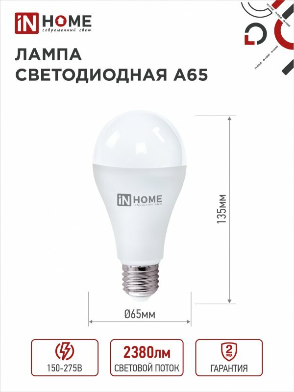 Лампа светодиодная IN HOME LED-A65-VC 25Вт 230В Е27 4000К 10 шт.