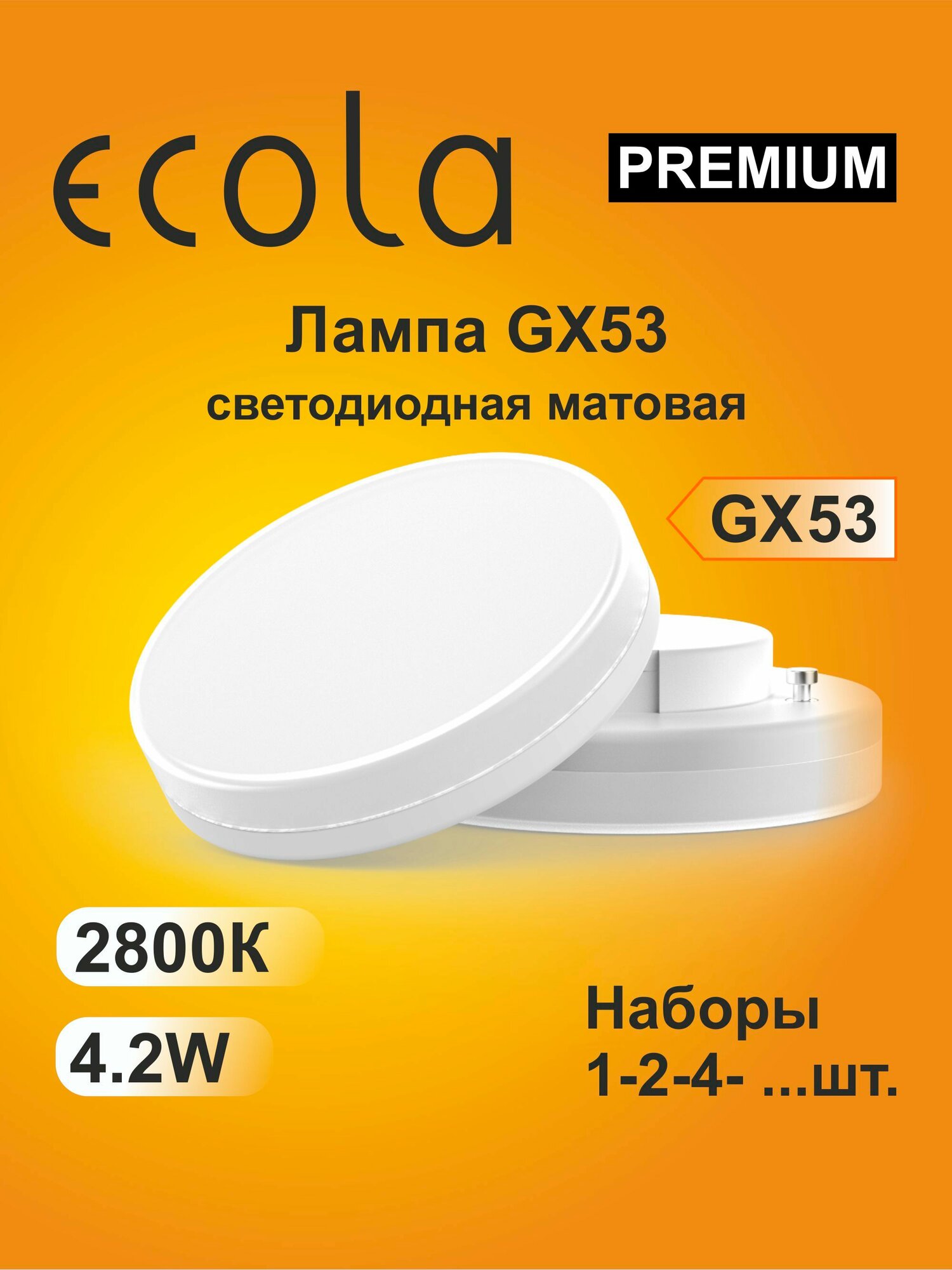 Купить 4 шт. Лампы светодиодные Ecola Premium GX53 4,2W 2800K (тёплый белый) матовая Экола Премиум