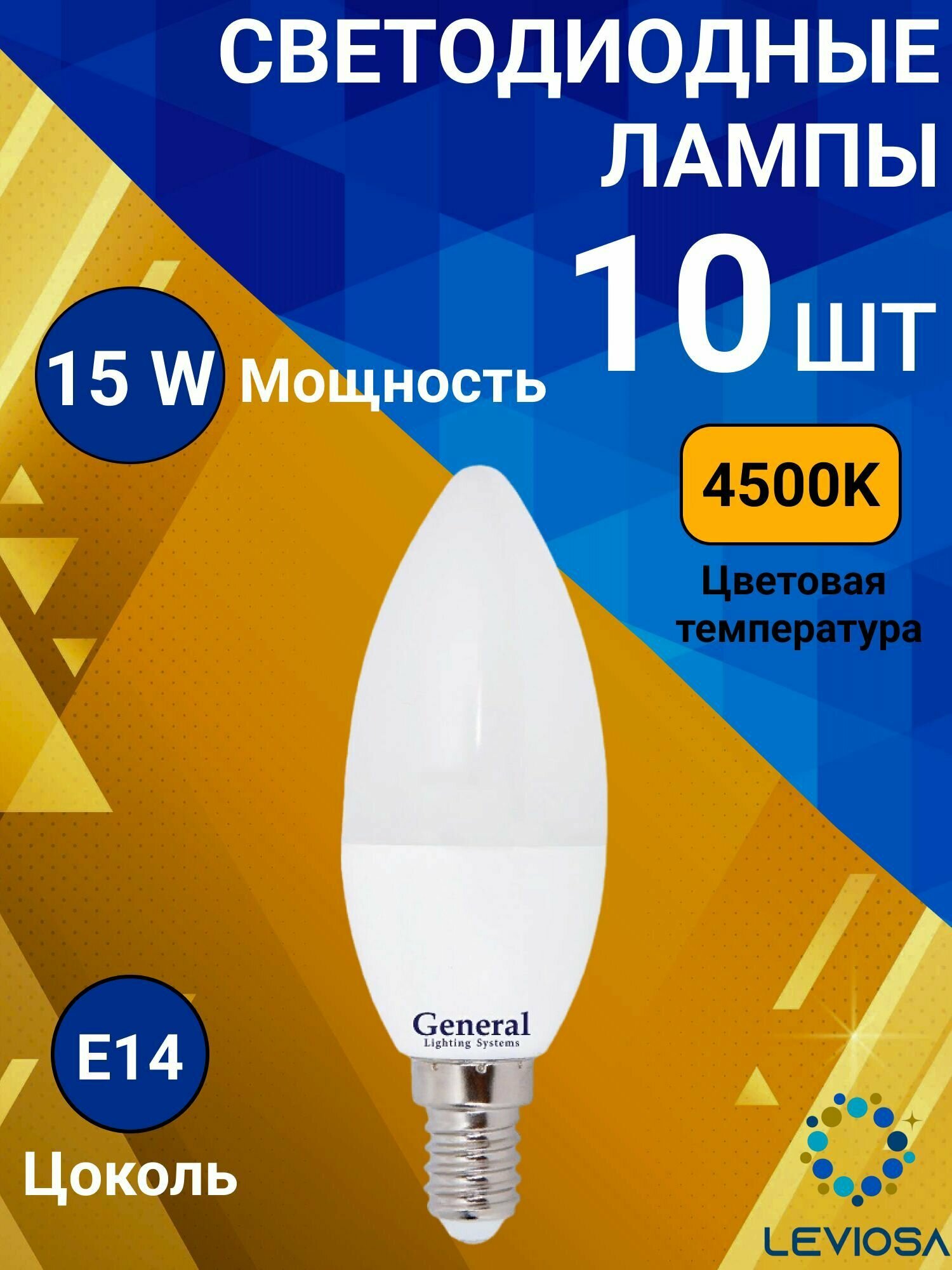 Купить Светодиодные лампы, General, Комплект из 10 шт, Мощность 15 Вт, Цоколь E14, Нейтральный свет