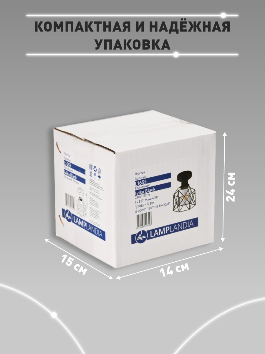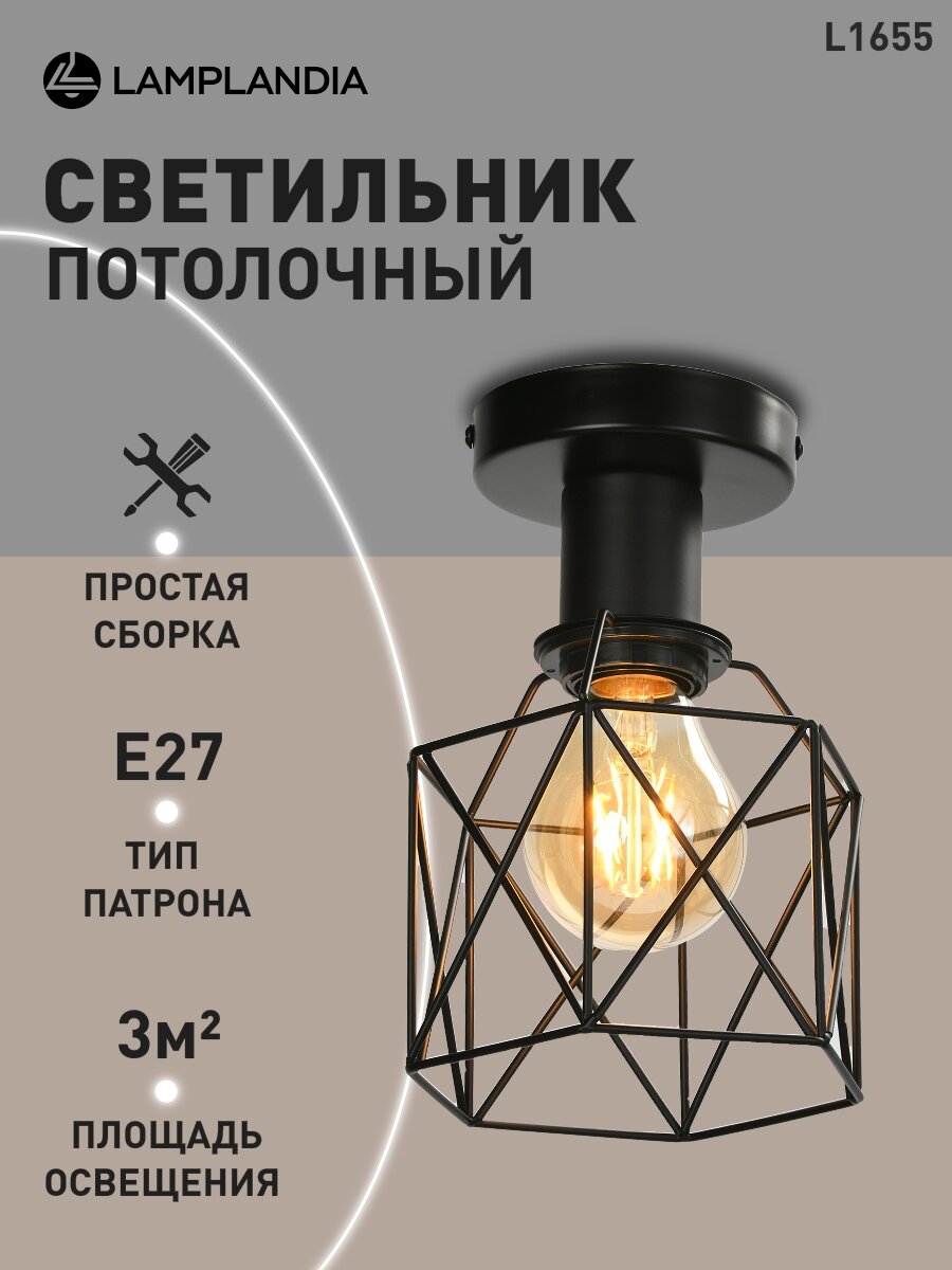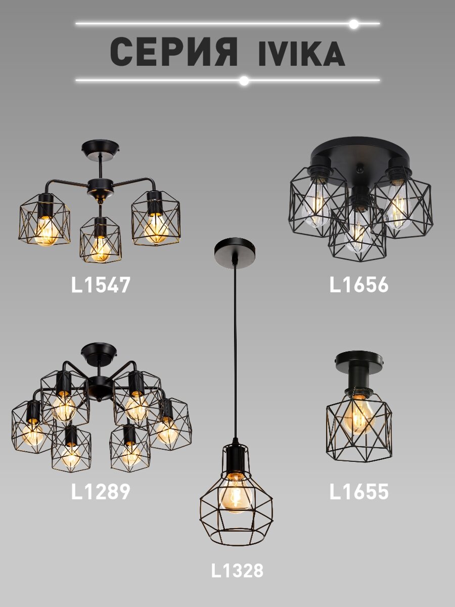 Светильник потолочный L1655 IVIKA BLACK, Е27*1 макс 40Вт интересное: