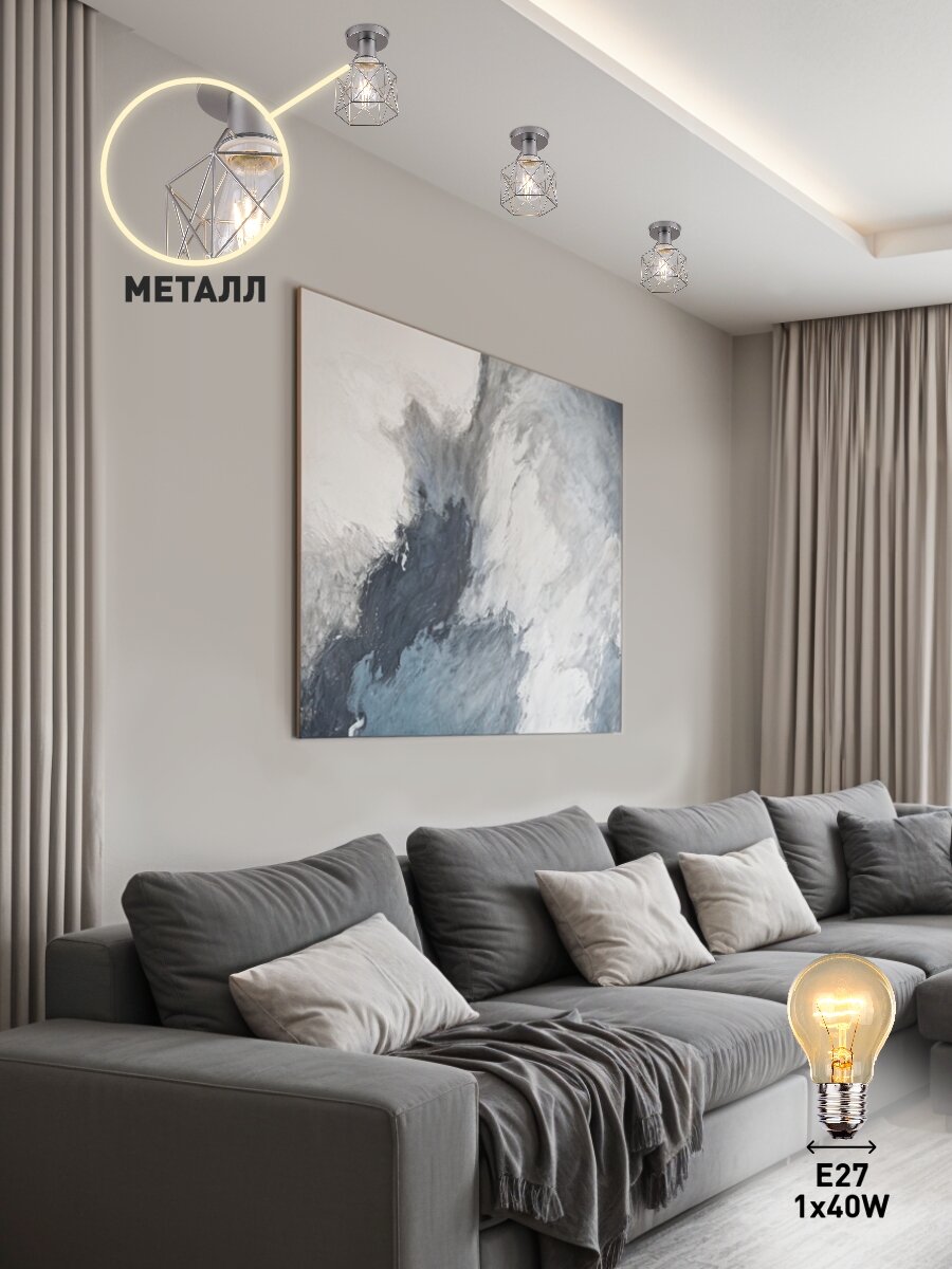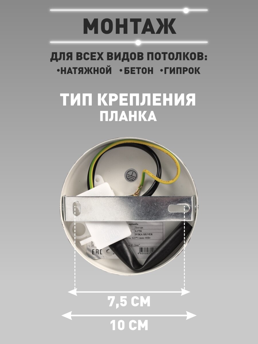 Светильник потолочный Lamplandia L1756 IVIKA SILVER, Е27*1 макс 40Вт интересное: