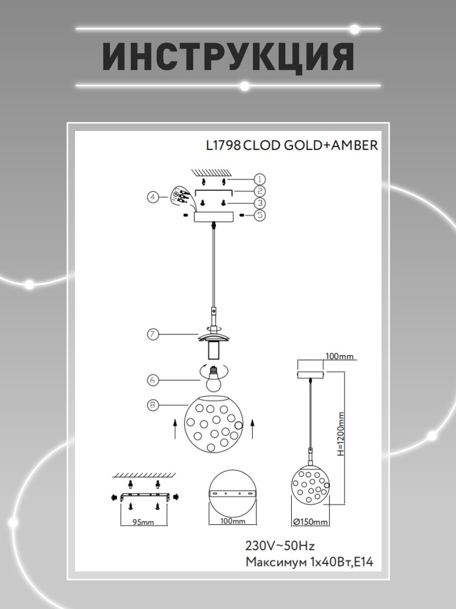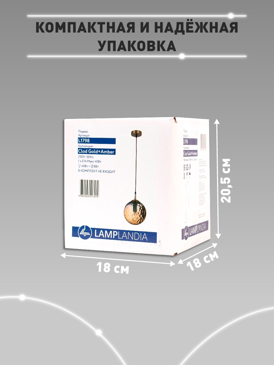 Светильник подвесной Lamplandia L1798 CLOD GOLD + AMBER, Е14*1 макс 40Вт интересное:
